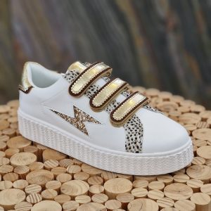 Basket éclair Xenia blanc et or à scratchs de chez VANESSA WU