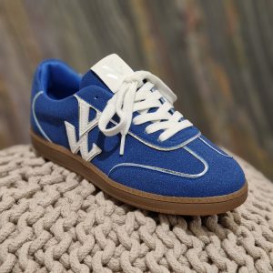 Basket monogramme Sarah bleu à semelle rétro de chez VANESSA WU.