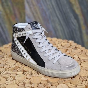 Basket montante noire, grise, argentée et glitter.
