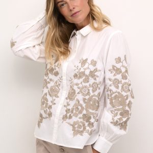 Chemise Daisy blanche avec broderie beige de chez Cream.