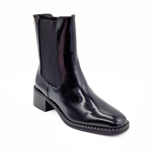 Santiag à talon carré, en similicuir avec aspect reptile, quadricolore : noir, vert, doré et blanc.