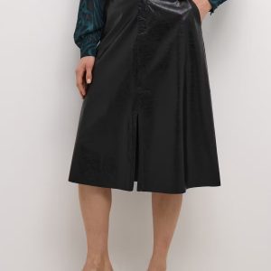 Jupe Candi mi-longue, en similicuir noir, avec fente sur le devant de chez Cream.