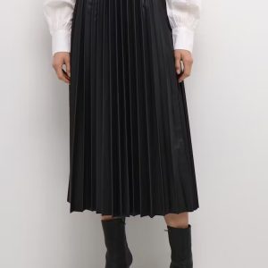Jupe Poppi plissée mi-longue, en tissu enduit noir, de chez Cream.