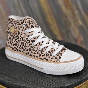 Basket montante léopard. En toile, à lacet. Semelle plateforme.