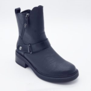 Bottine noire CARMELA en cuir, aspect daim et bouts usés