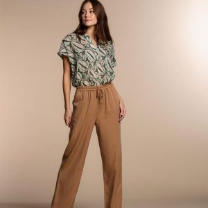 Pantalon fluide Geisha marron tabac.