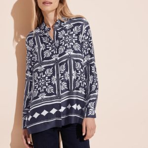Chemisier en satin imprimé, marine et blanc de chez Street One.