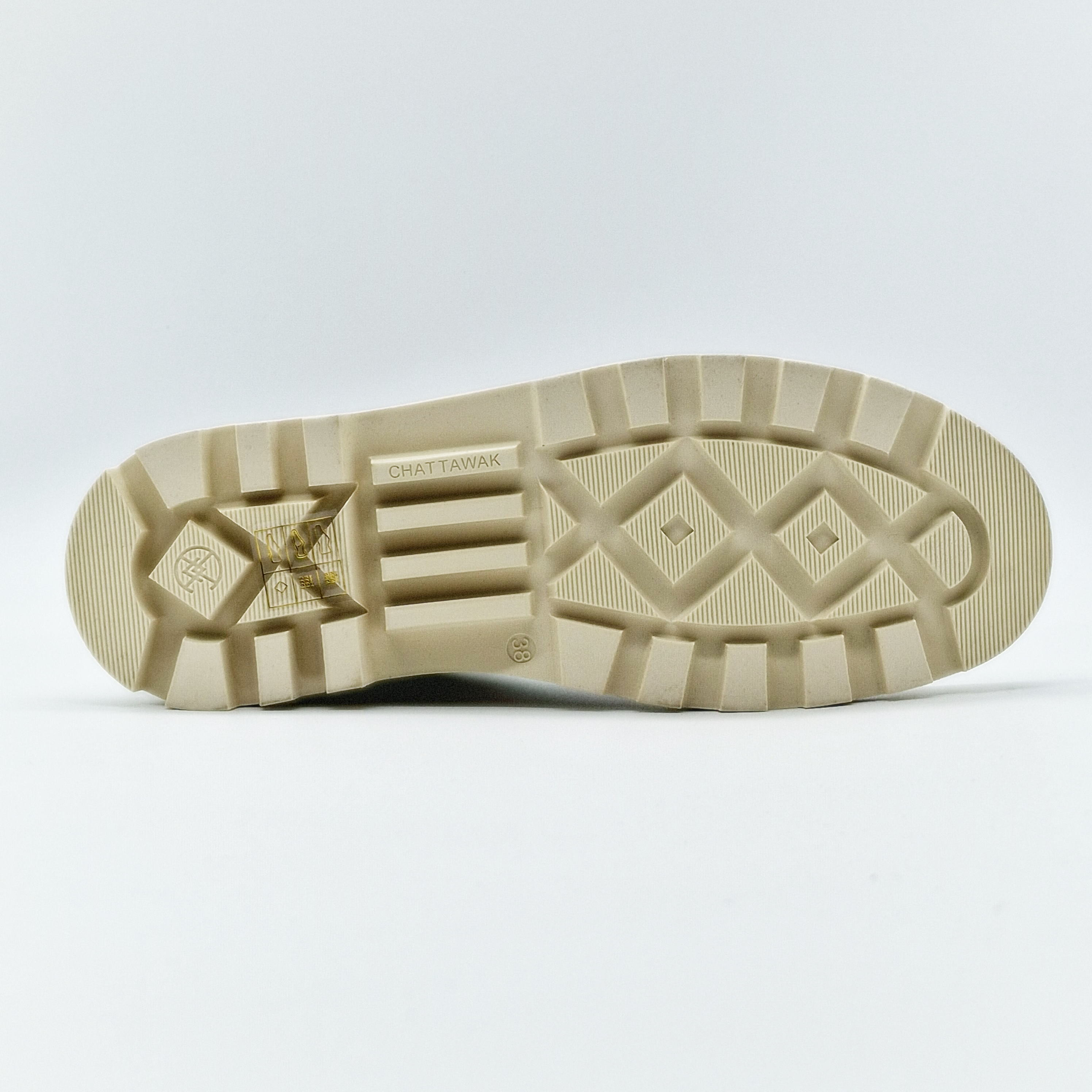 Bottine beige, semelle assortie, élastiquée sur le côté.