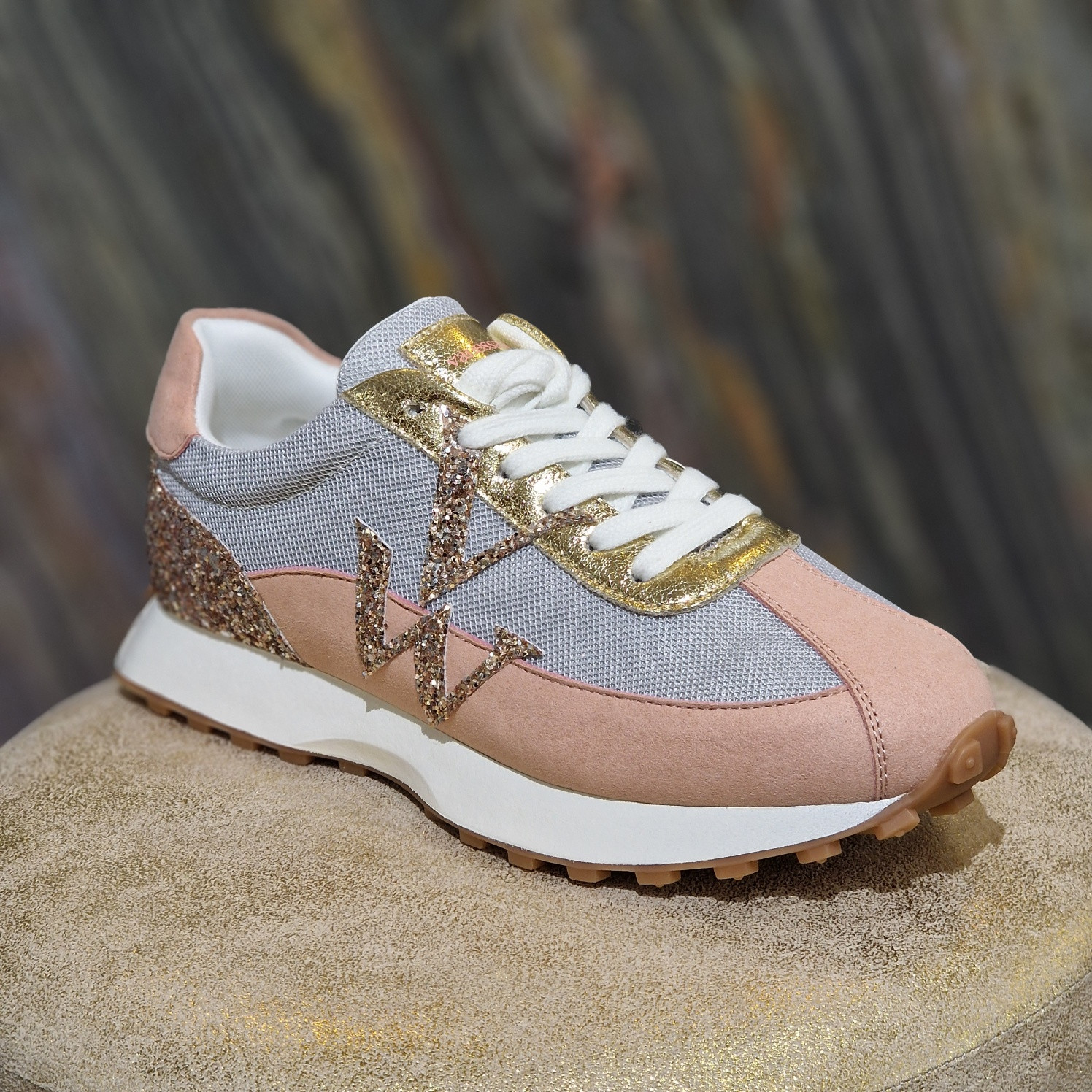 Basket beige Vanessa Wu April à semelle espadrille et éclair orange