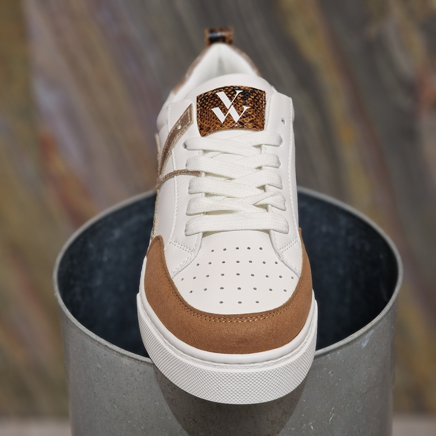 - Baskets en similicuir blanc