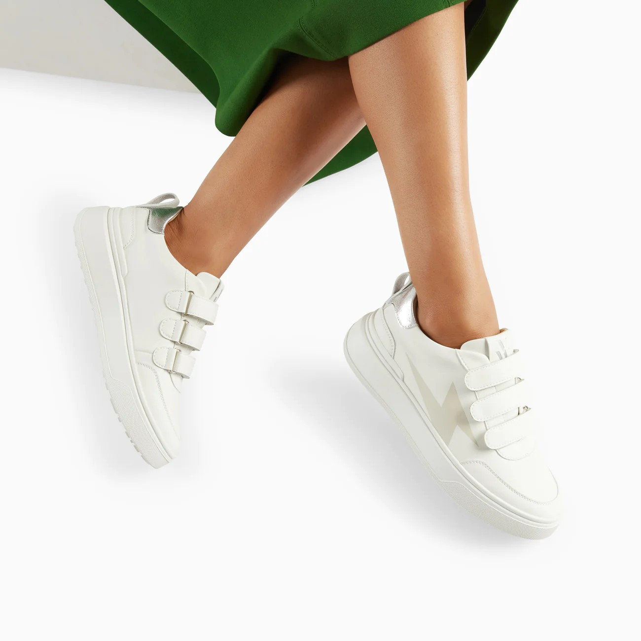 - Baskets en similicuir blanc