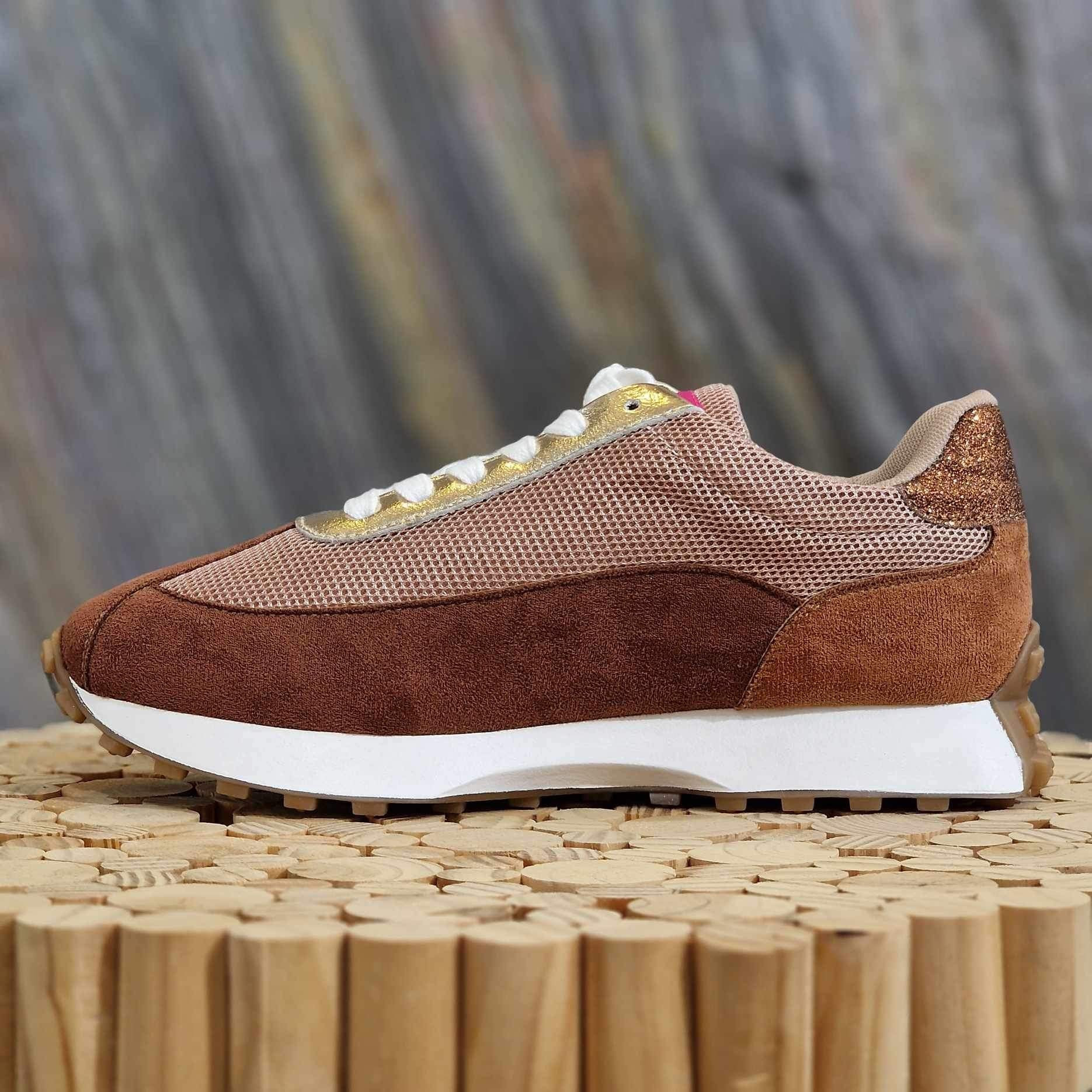 - Empiècements en suédine marron brique