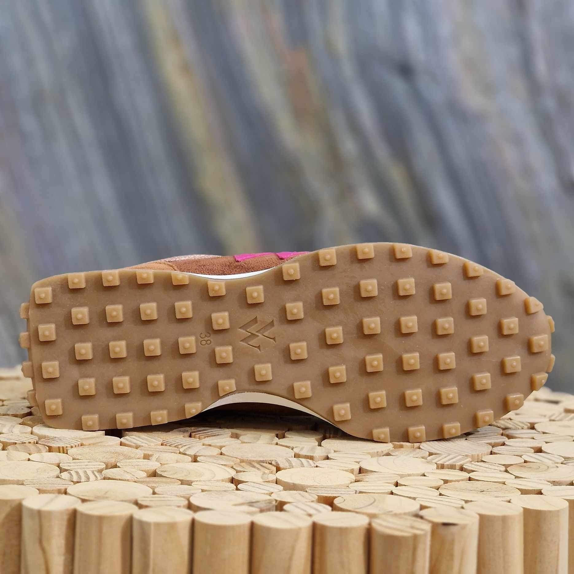 - Semelle peinte en blanc à petits crampons camel