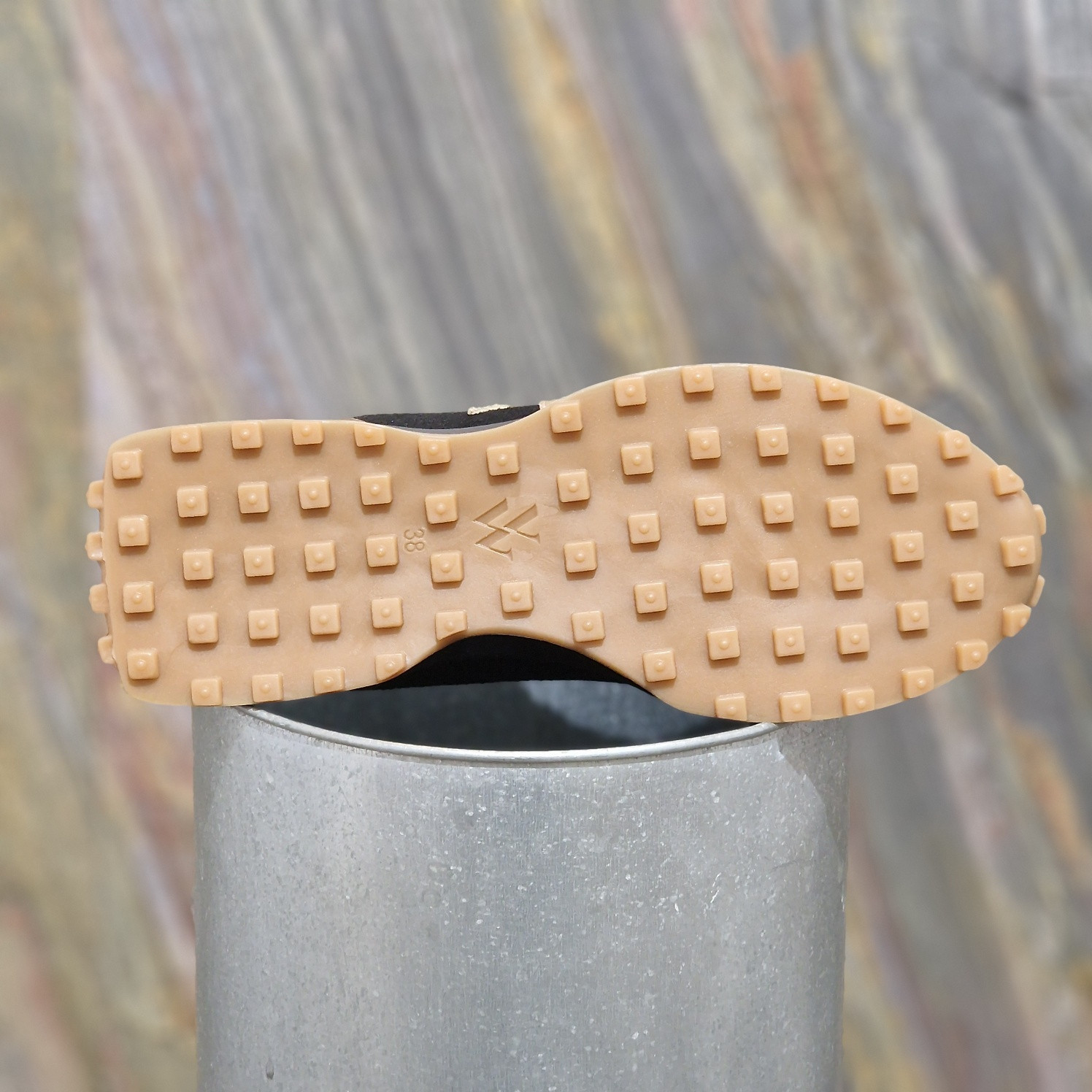 - Semelle peinte en noir à petits crampons camel