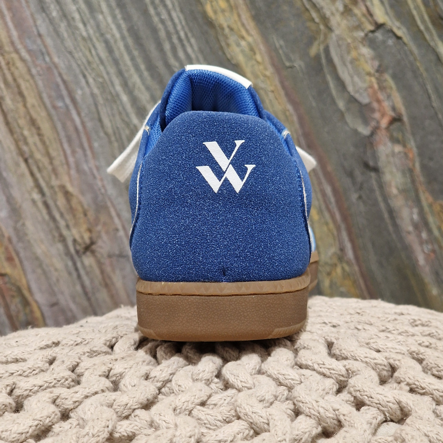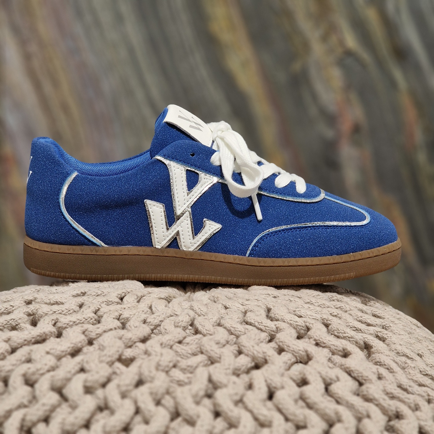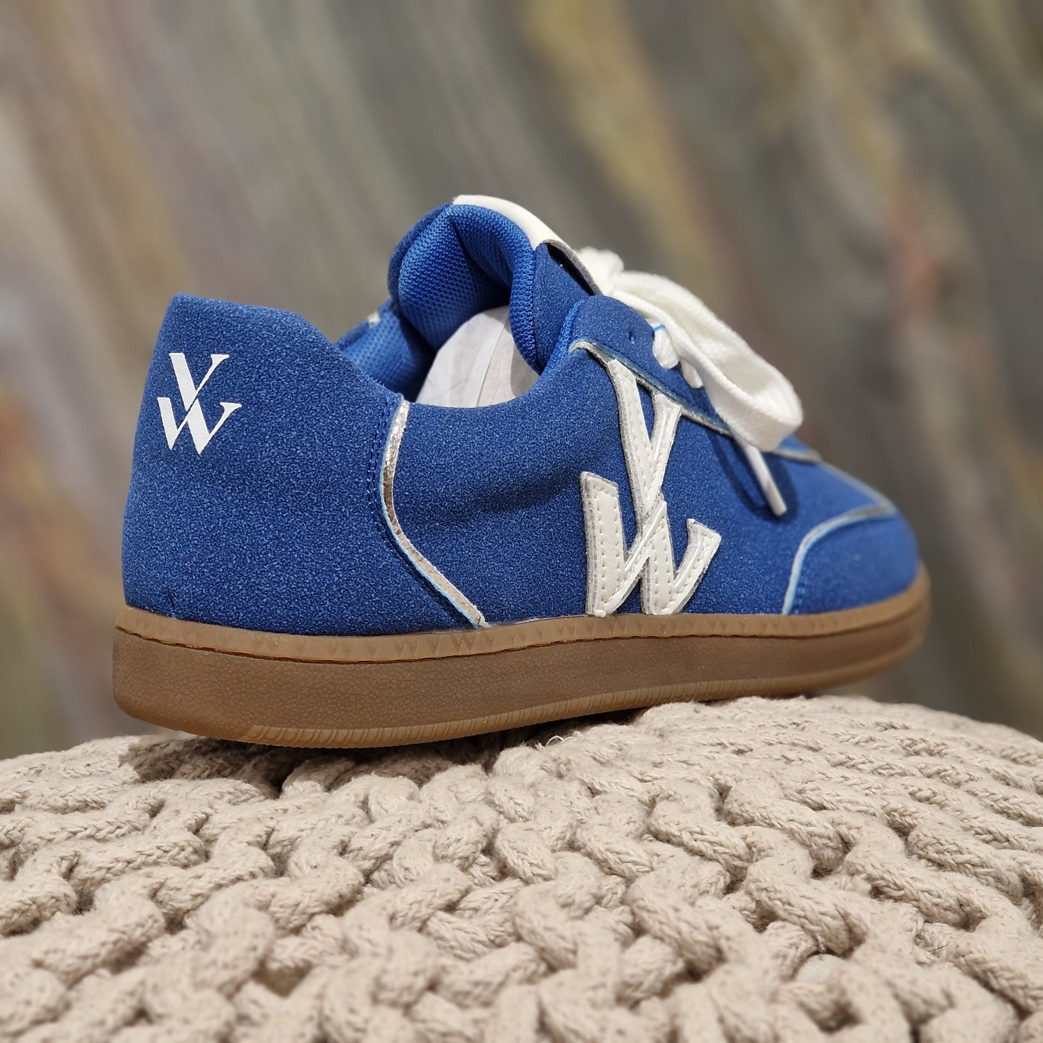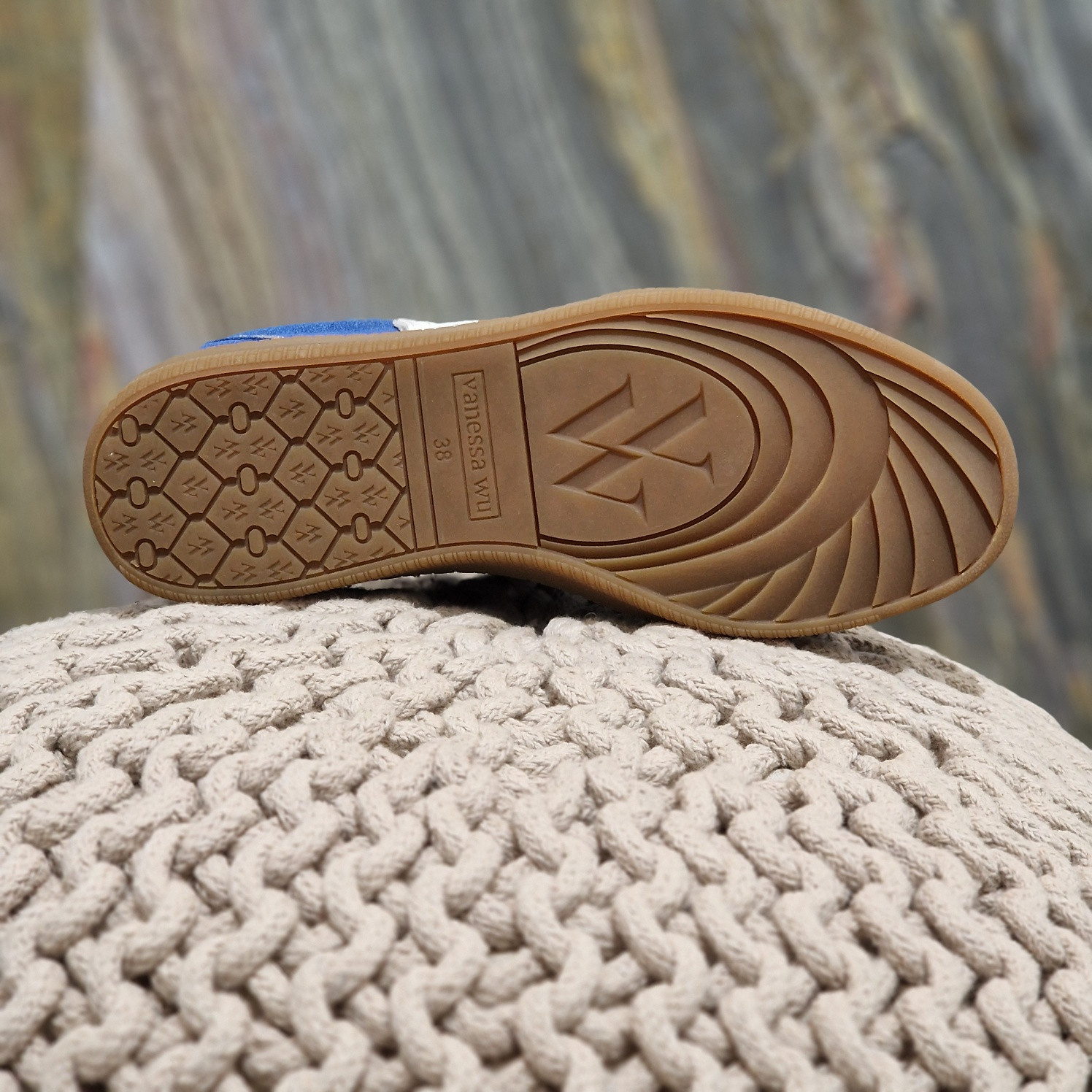 Baskets montante Madeline VANESSA WU bleu navy, mixant toile côtelé et similicuir, sur une plateforme blanche de 4 cm, avec monogramme latéral