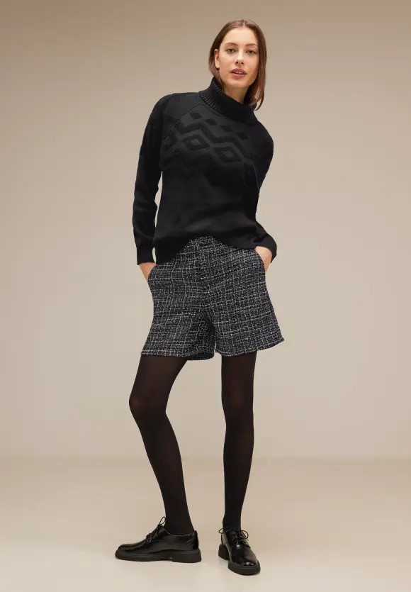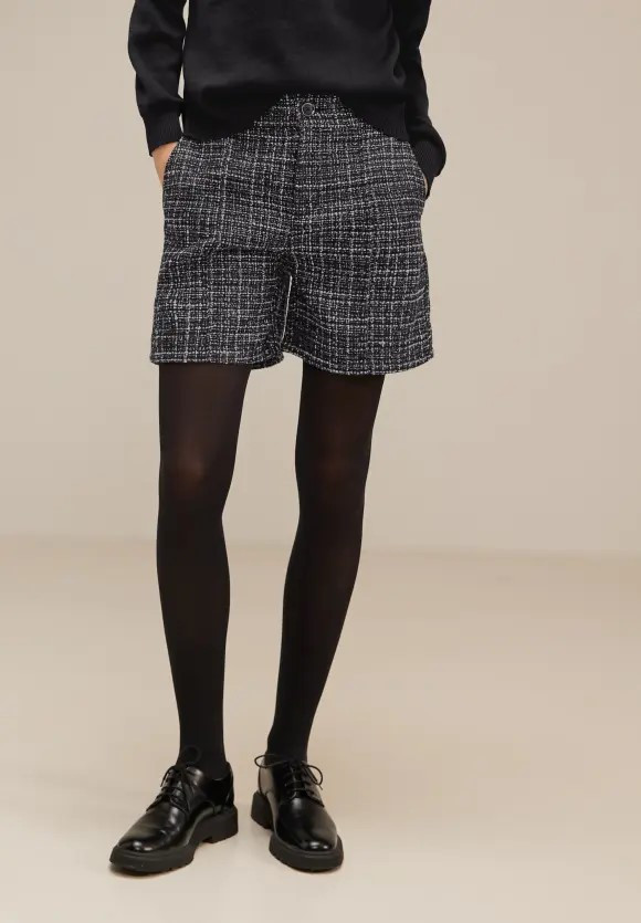 Prête pour les soirées et élégante pour l'automne : le bermuda en bouclé de Street One, à la coupe décontractée et à la taille haute, avec une ceinture élastiquée dans le dos et des poches, vous accompagnera pour vos soirées et apportera un petit quelque chose en plus à vos tenues d'automne.