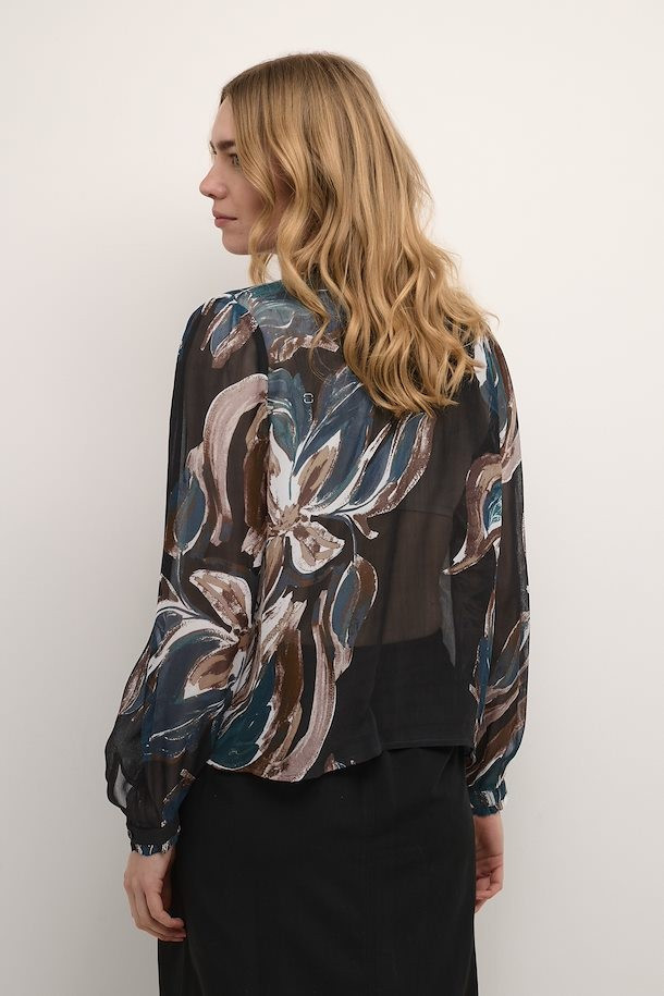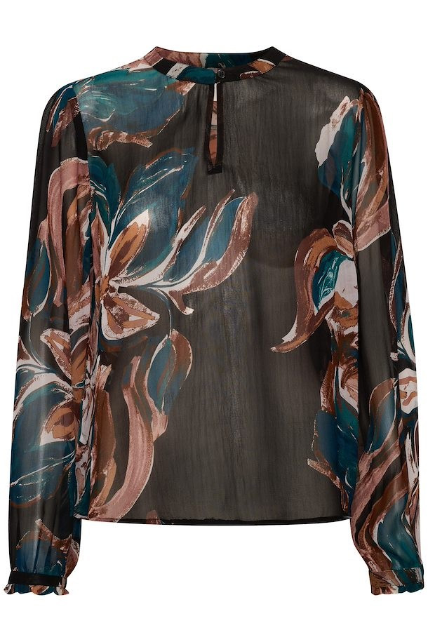 Cette blouse est parfaite pour la saison automnale, hivernale, par ces couleurs : bleu canard, bleu, vert, chocolat, caramel, beige. Elle arrive sur vos hanches, son tissu en transparence apporte le côté sexy, mais avec caréco plus classique, pour faire des looks différents. Elle a un joli col goute avec un bouton qu'on peut fermé ou non. Des manches longues avec des poignets avec fentes et boutons.