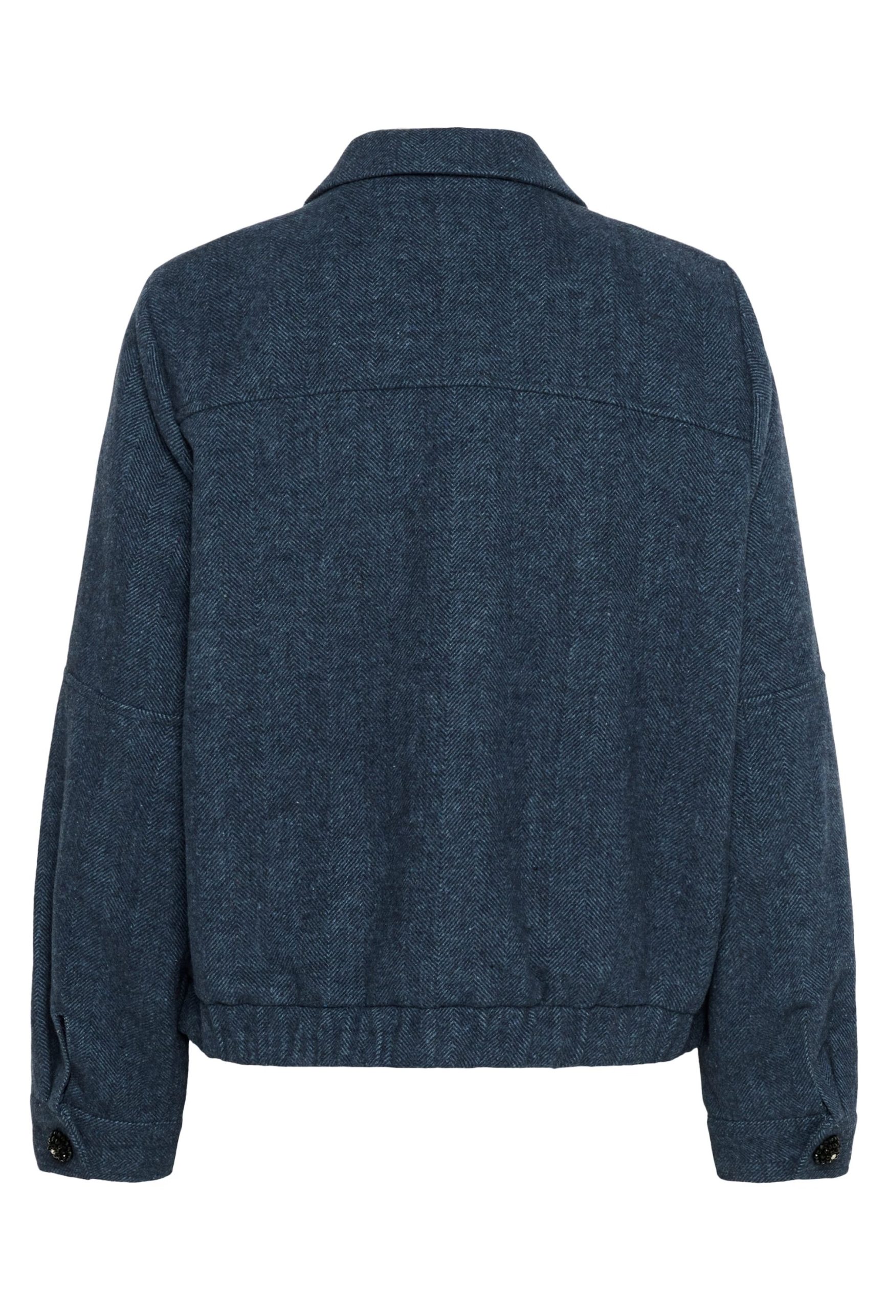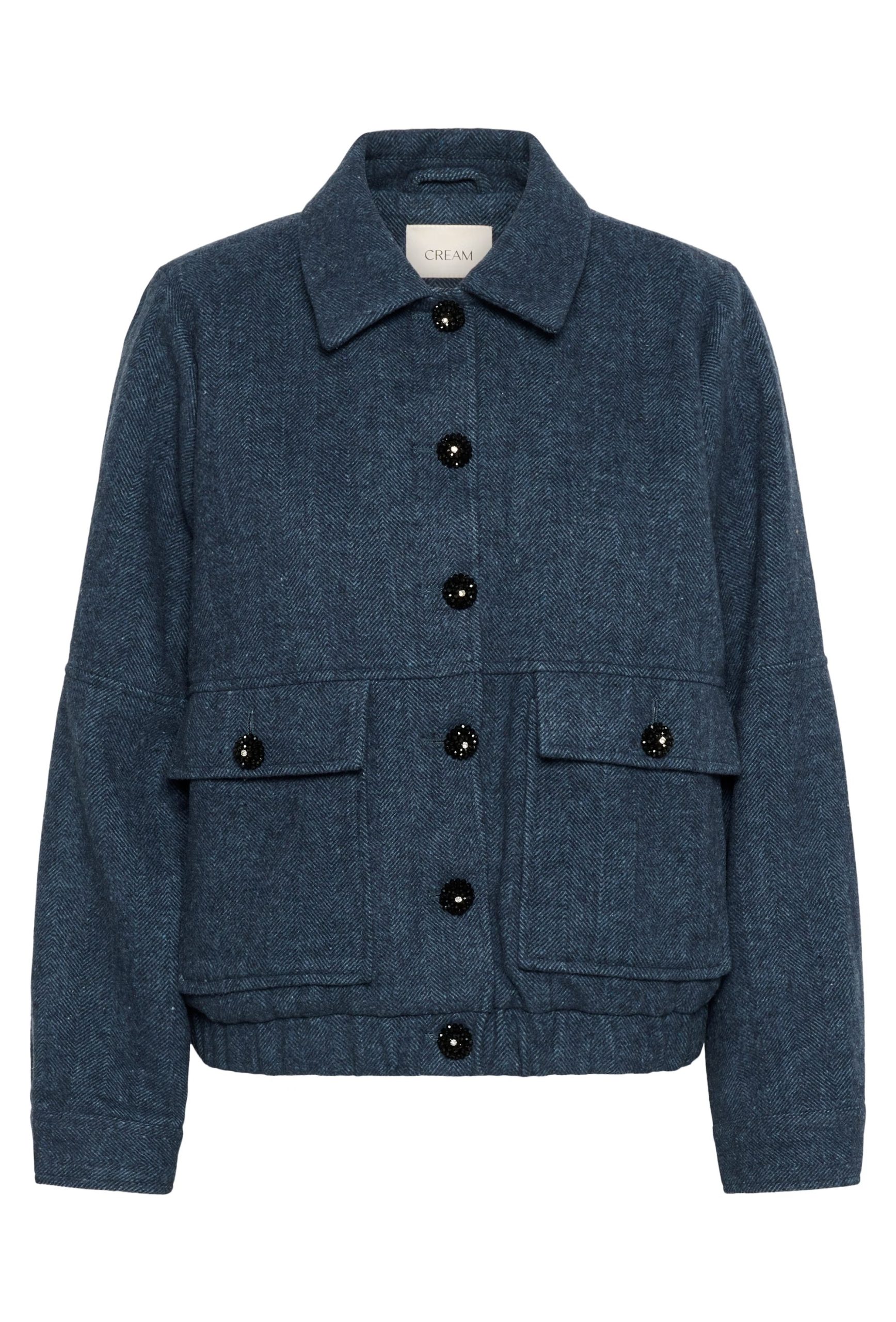 Ce blouson femme courte adopte une coupe décontractée, un col chemise classique et une fermeture à boutons sur le devant. Avec les boutons perlés noirs et strass au centre. Les poches à rabat et manches longues assurent polyvalence et confort..