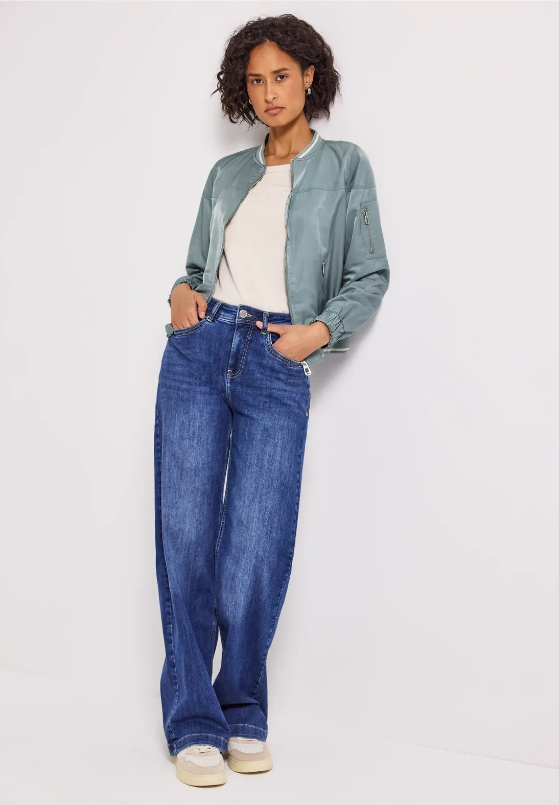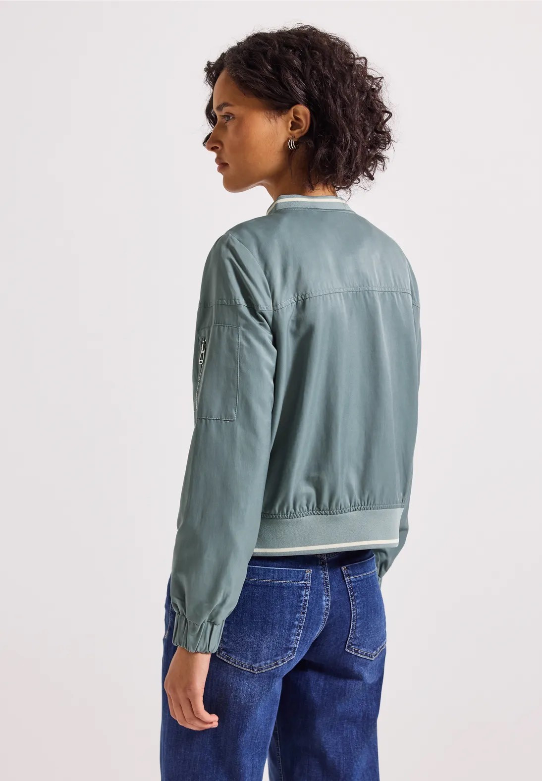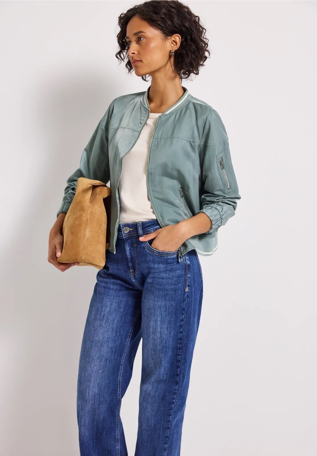 Le blouson en satin de Street One pour femmes séduit par son tissu légèrement brillant et ses détails collège à la mode. Une taille élastique, un col rond et une fermeture éclair chatoyante soulignent le look sportif et féminin, tandis que des poches latérales zippées et un détail zippé sur la manche apportent des accents pratiques. Cette veste légère est idéale pour des tenues de transition élégantes avec un flair moderne.