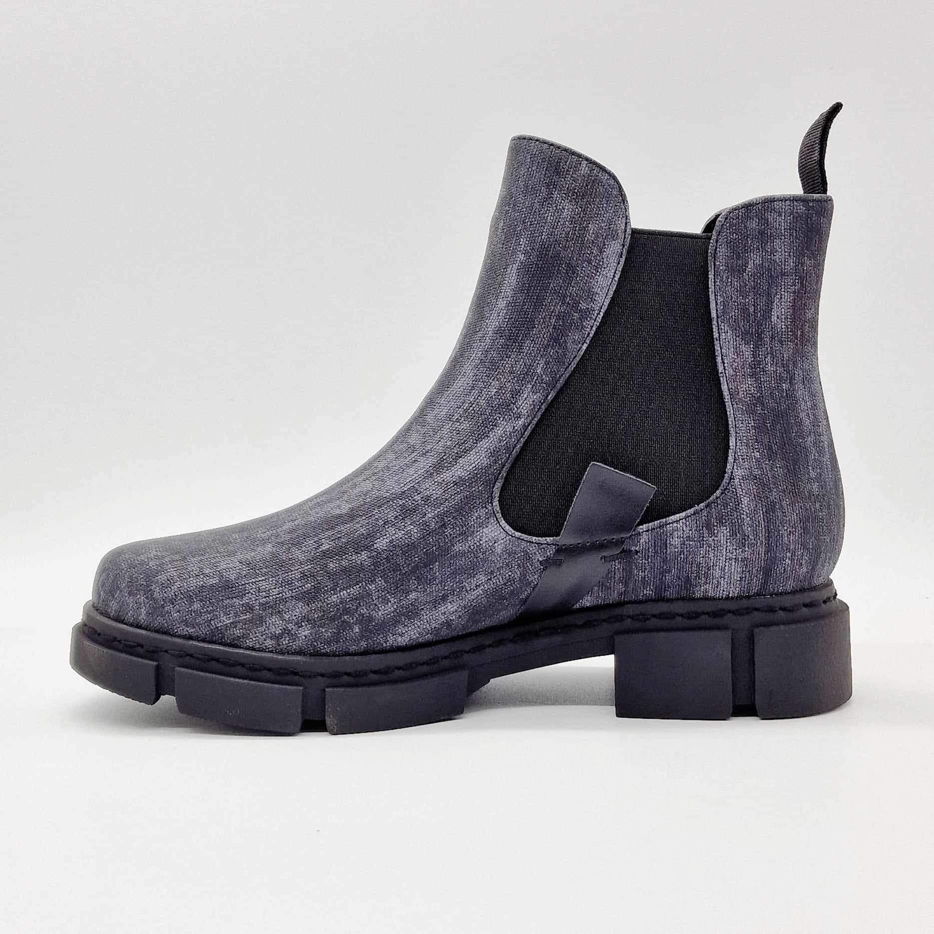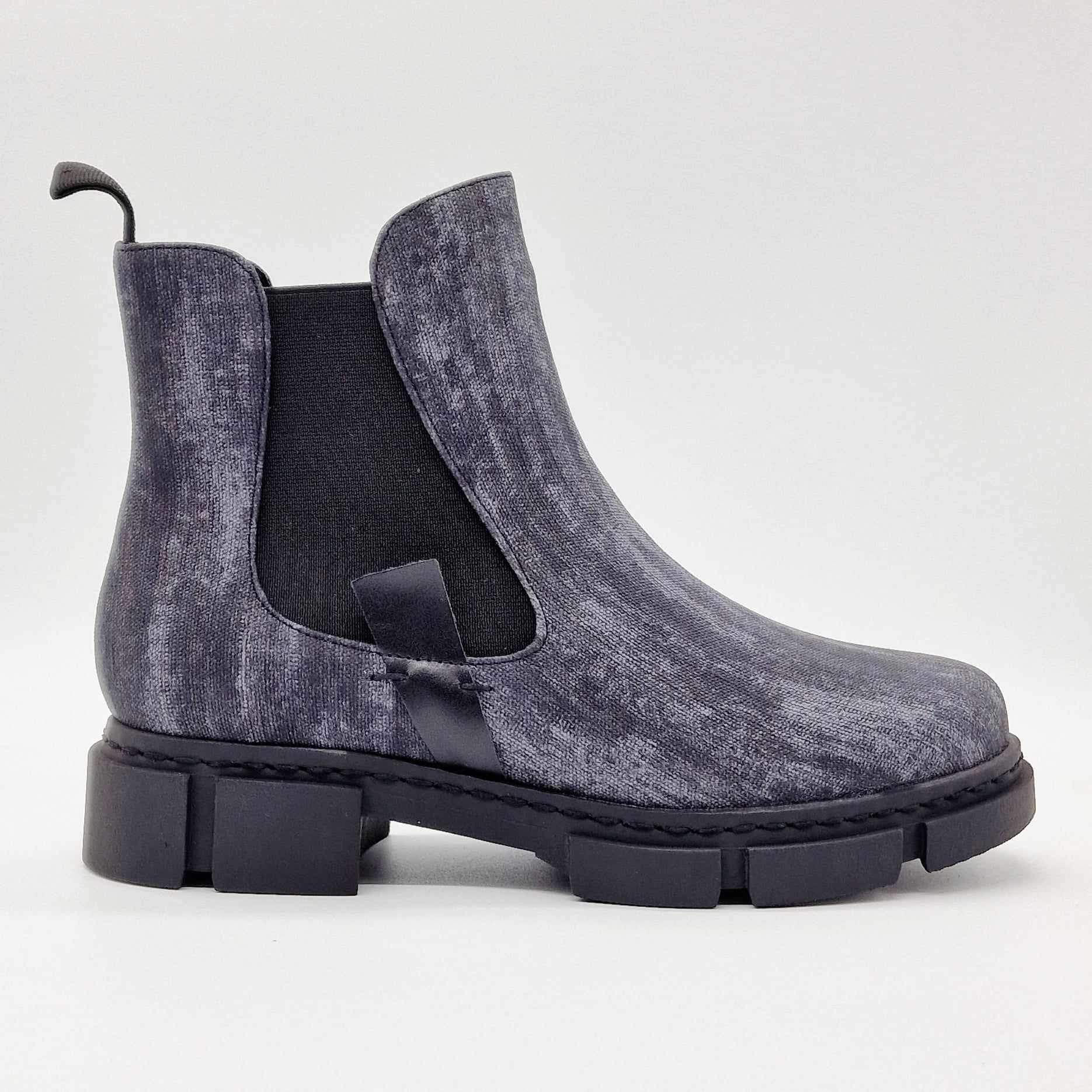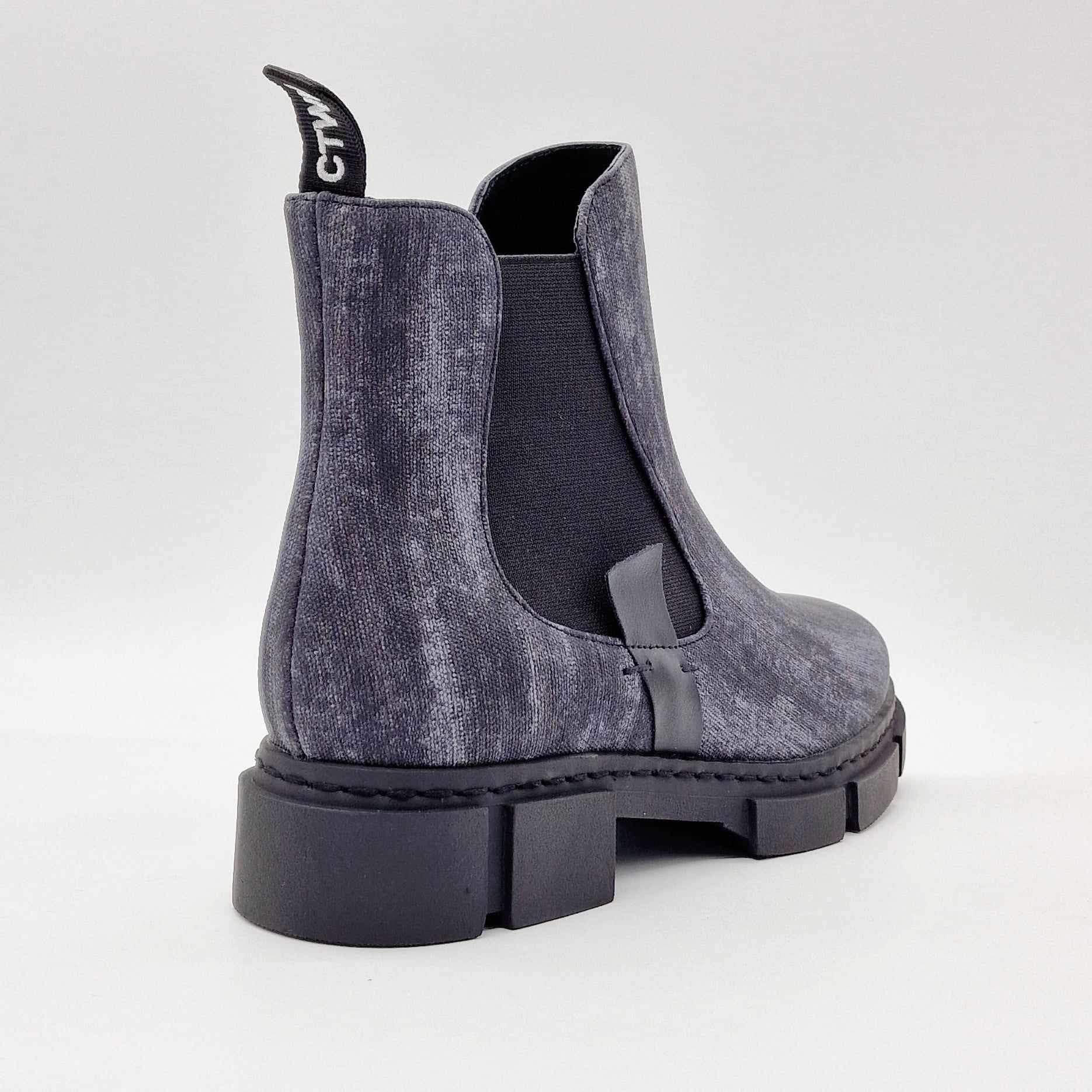 Bottines Xico noires marbrées CHATTAWAK. S'enfile grâce aux élastiques de chaque côté avec une fantaisie. Aspect noir marbré avec découpe à la cheville. Semelles compensées avec talons décrochées.