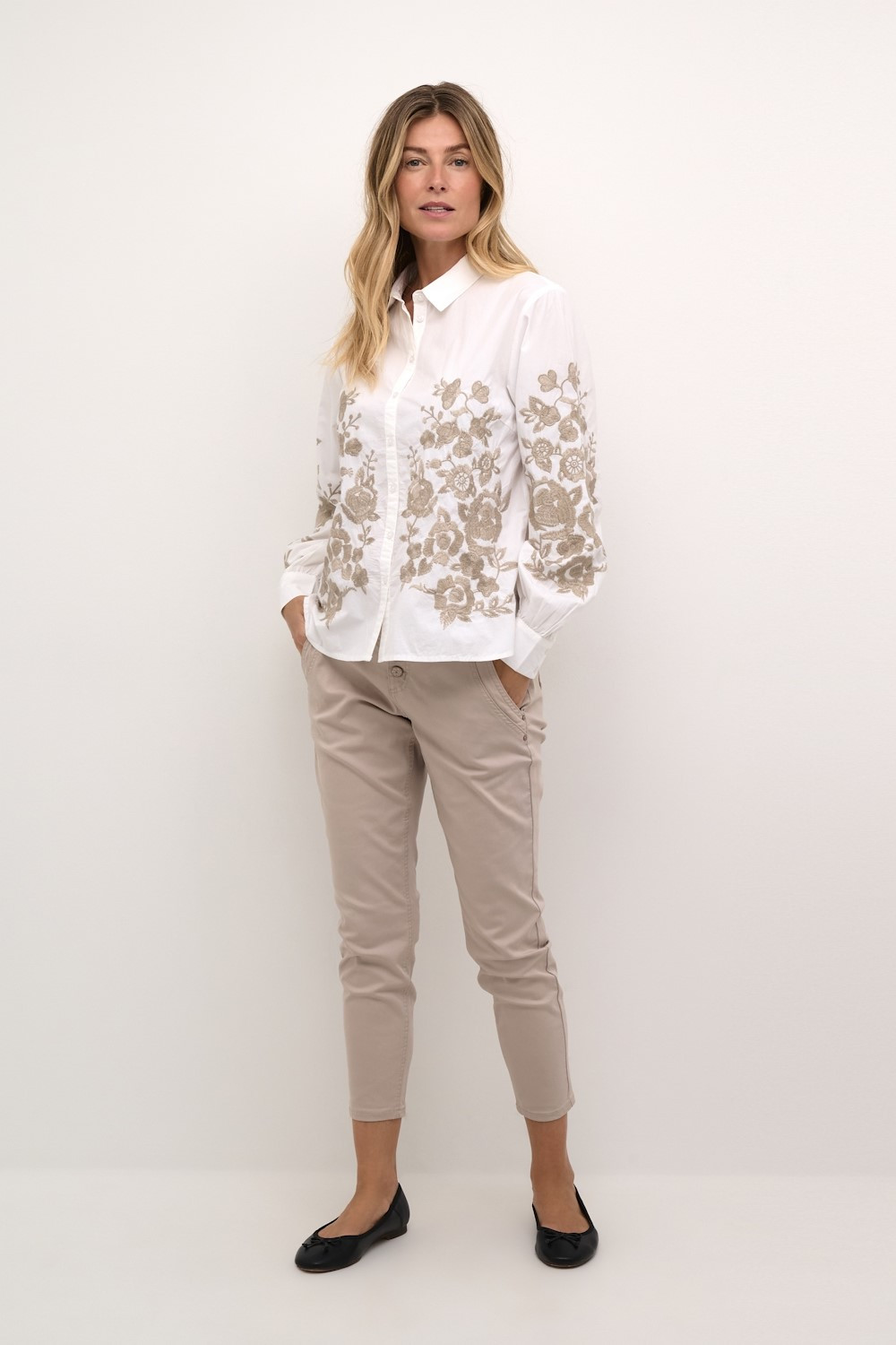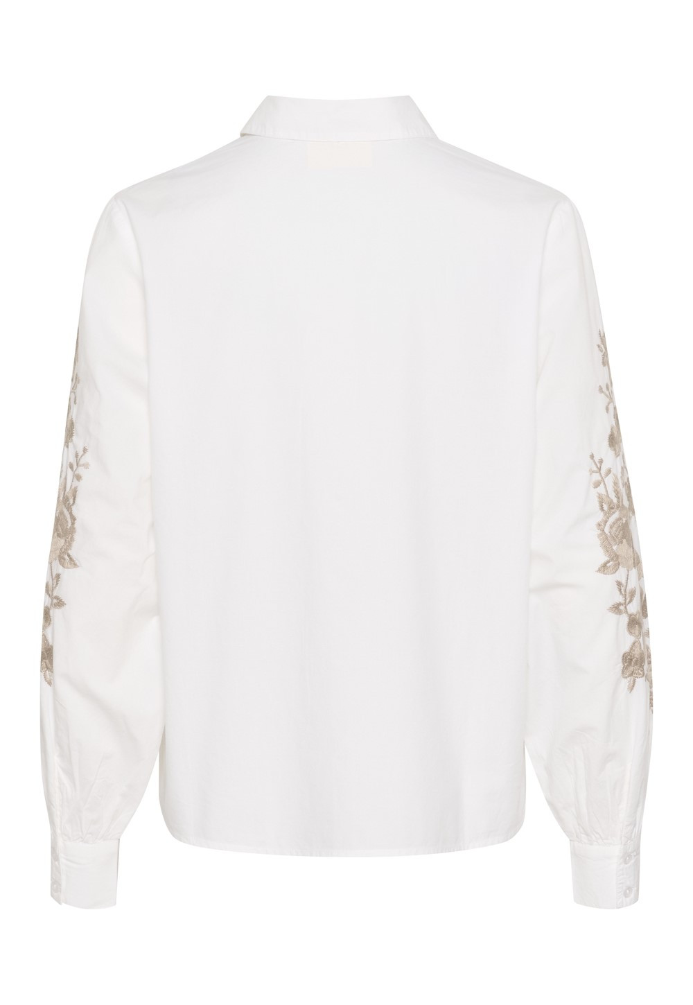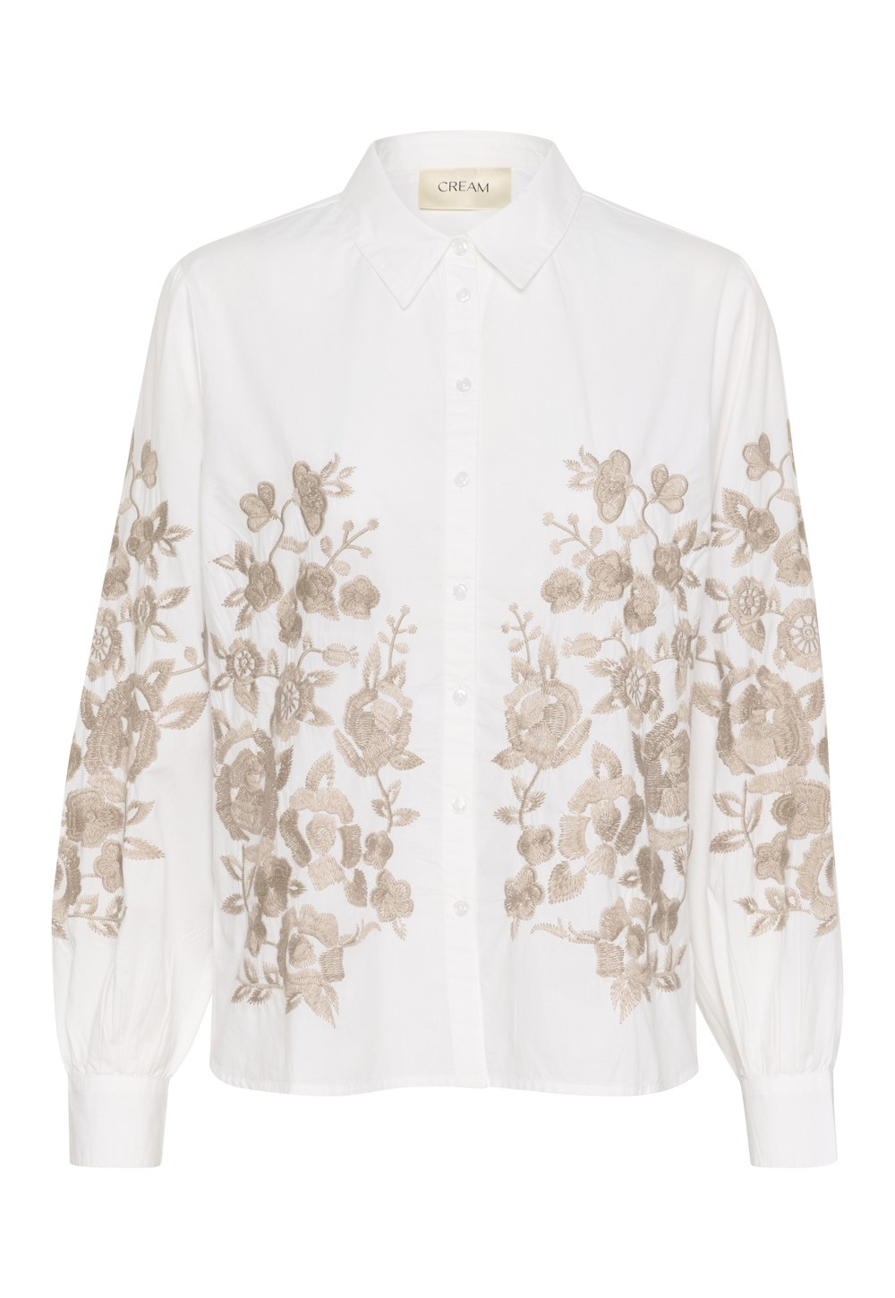 Cette chemise blanche, avec ses broderies beige de la marque Cream est travaillée et très élégante. D'une coupe oversize, qui descend jusque sur la hanche, elle offre un style facile à combiner. Elle a également un col chemisier. Elle a des manches longues travaillées larges avec des poignets en bas. Elle allie qualité et praticité.