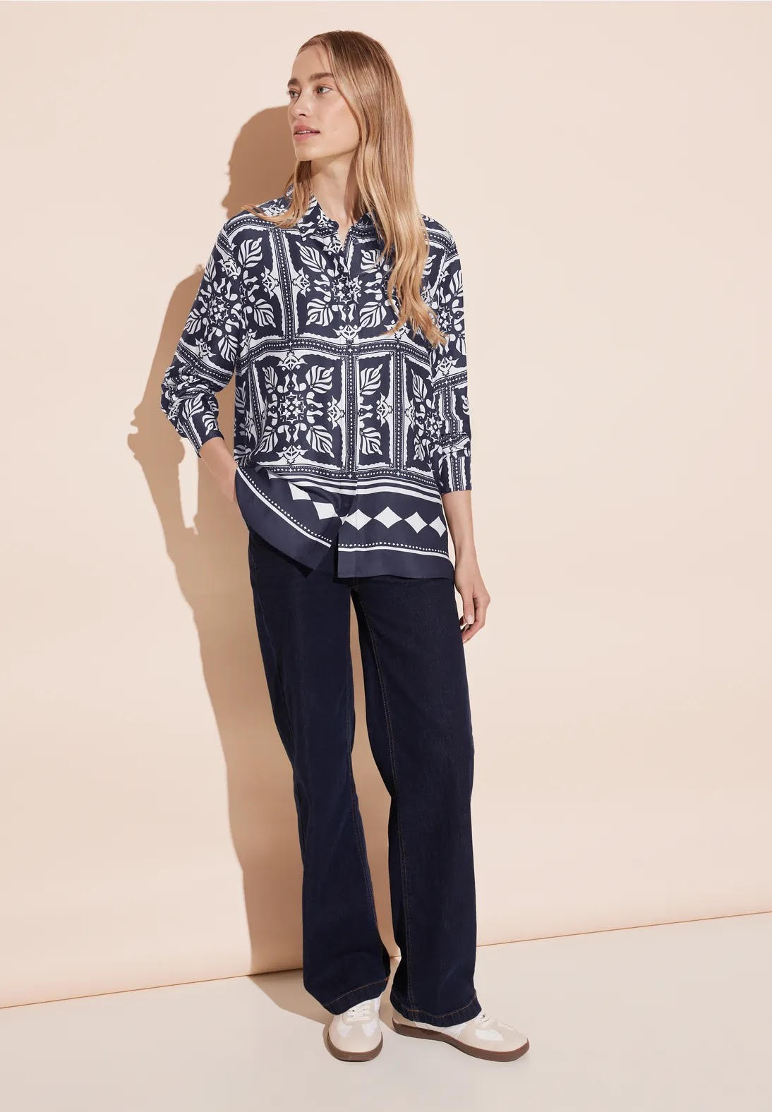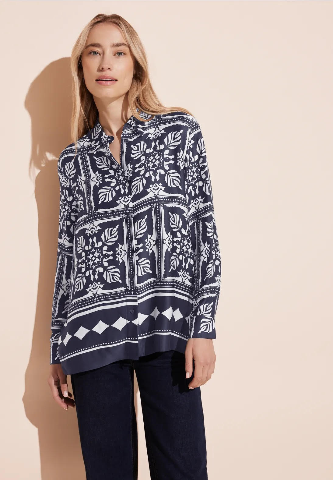 Ce chemisier en satin imprimé de Street One pour femmes est un chemisier élégant à manches longues avec poignets. Grâce à sa taille élastique, il offre une coupe confortable et un look moderne. Le mélange de motifs graphiques apporte une note originale au chemisier, tandis que le tissu de viscose doux assure un confort agréable.