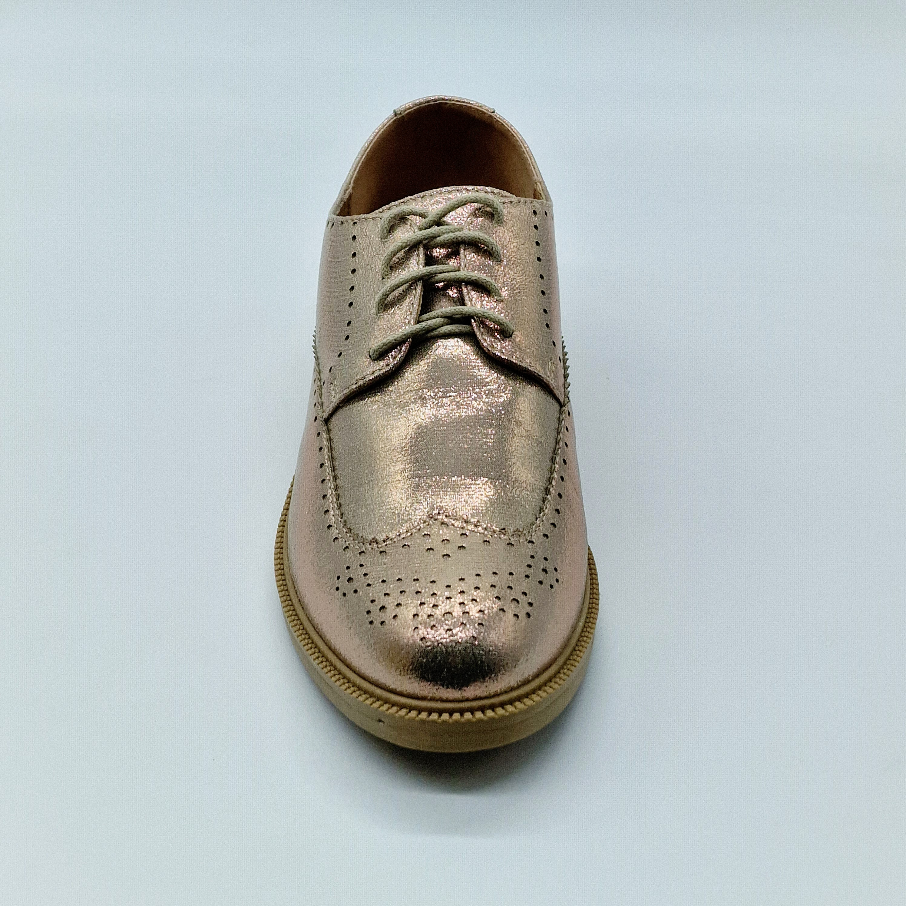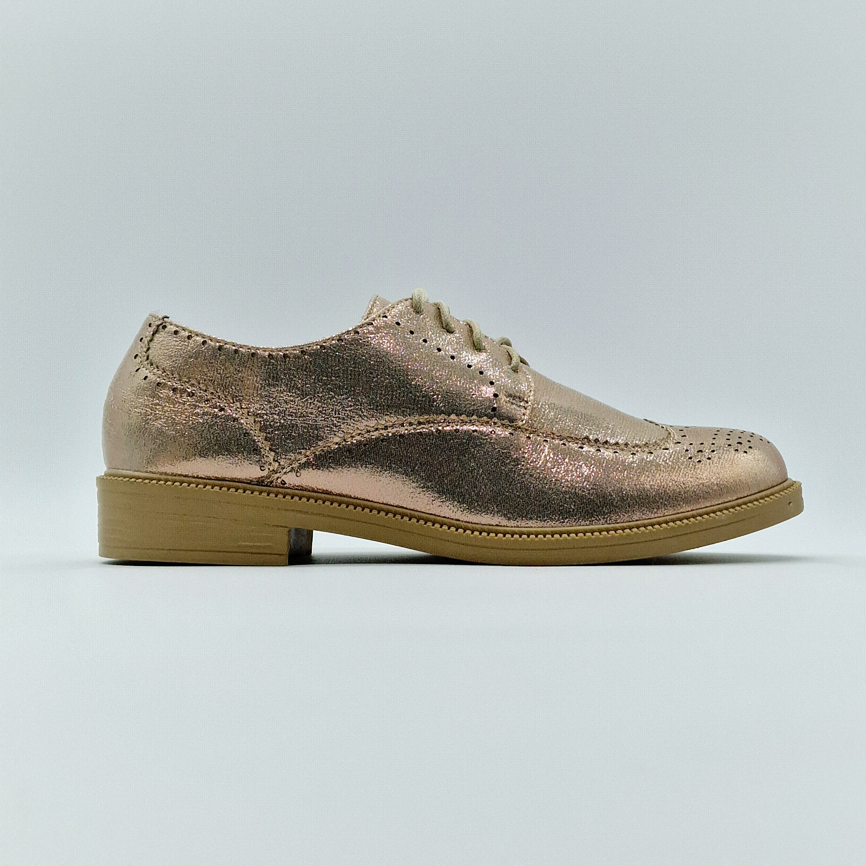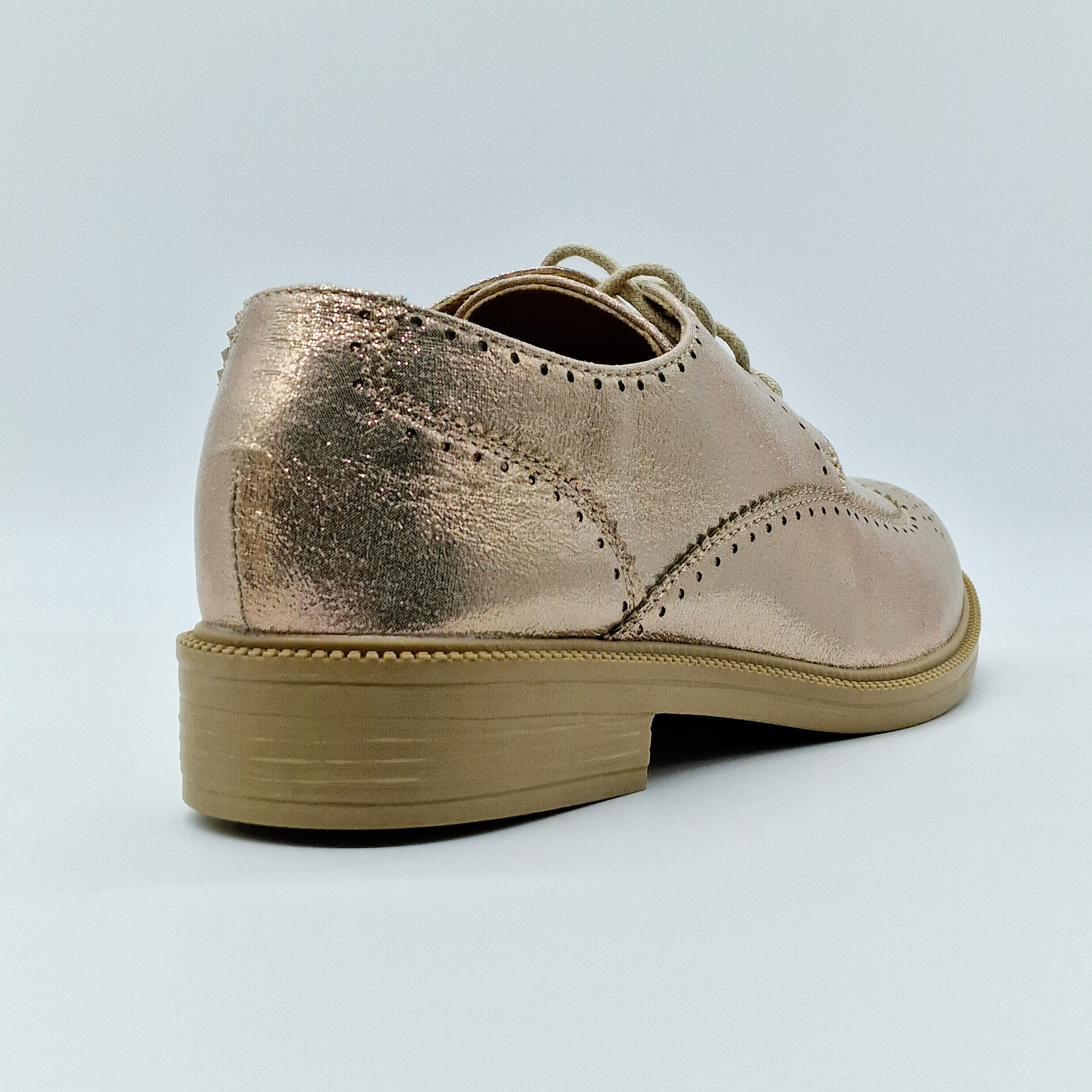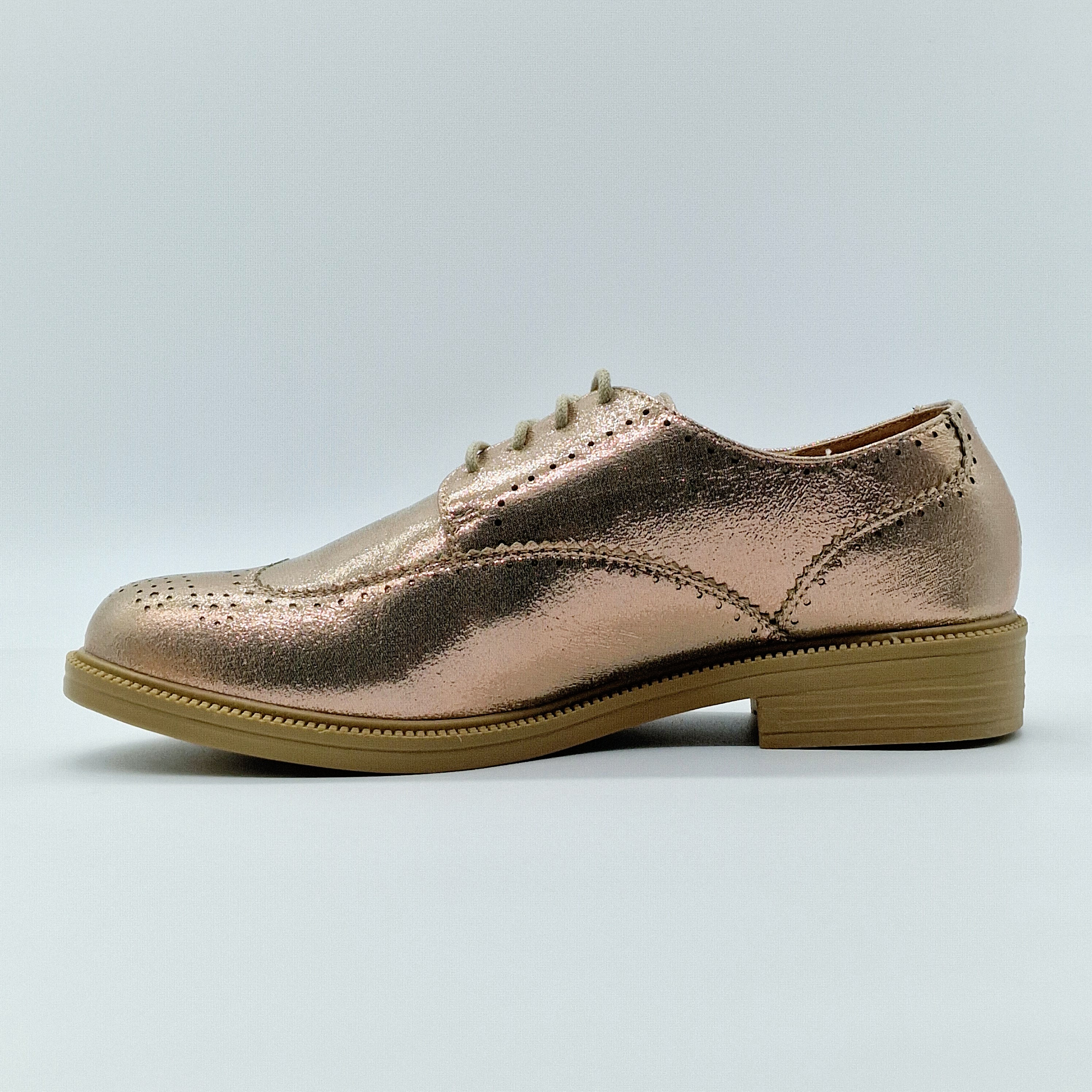 Derbie plate à lacet, de couleur champagne rosé.