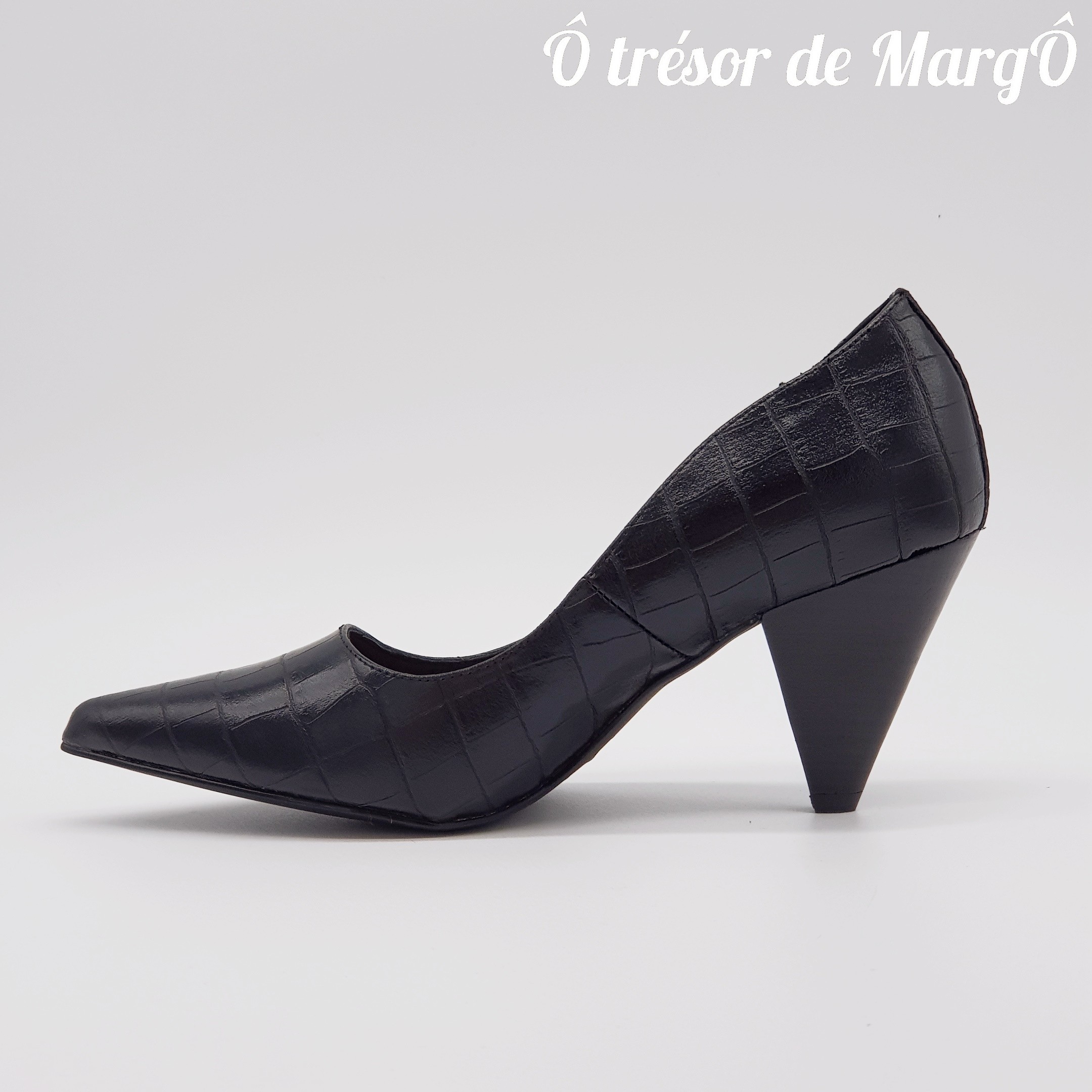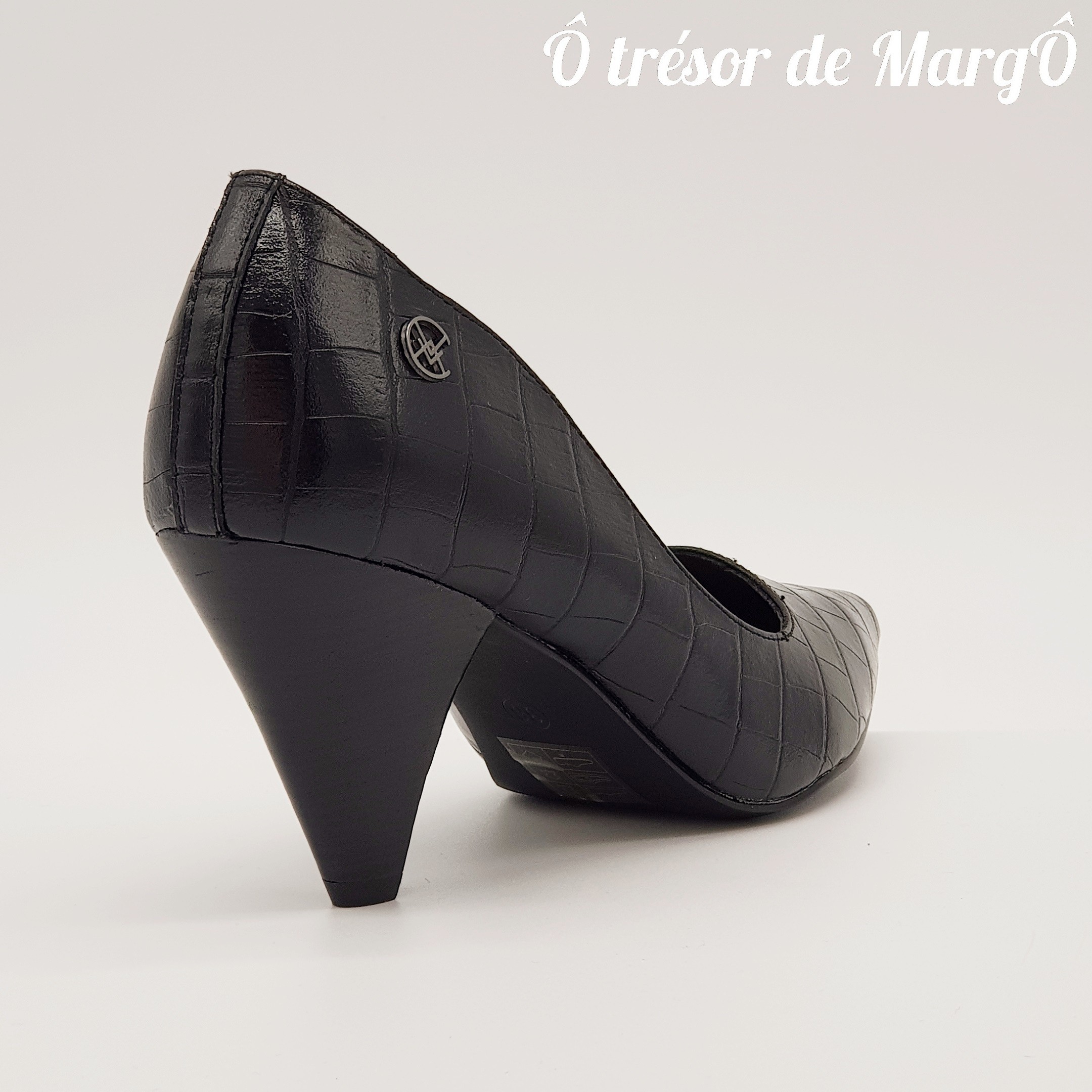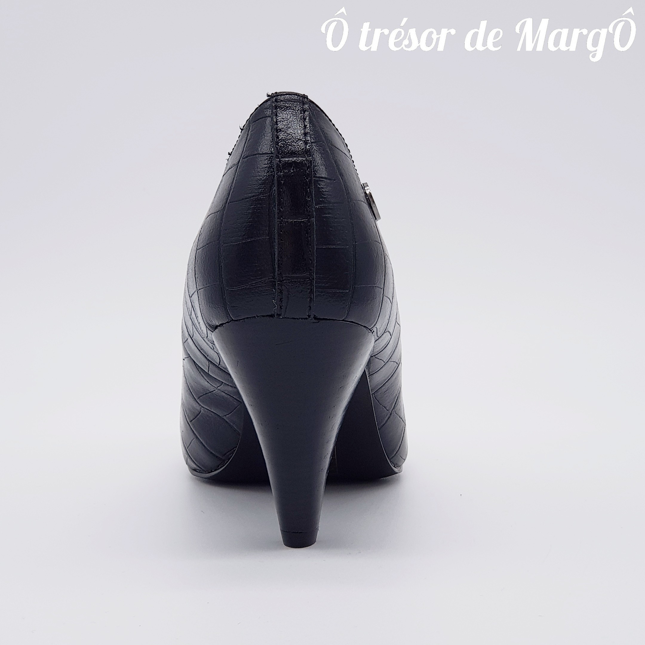 Escarpin noir Jakson de chez CHATTAWAK, aspect croco, tout l'intérieur est en cuir