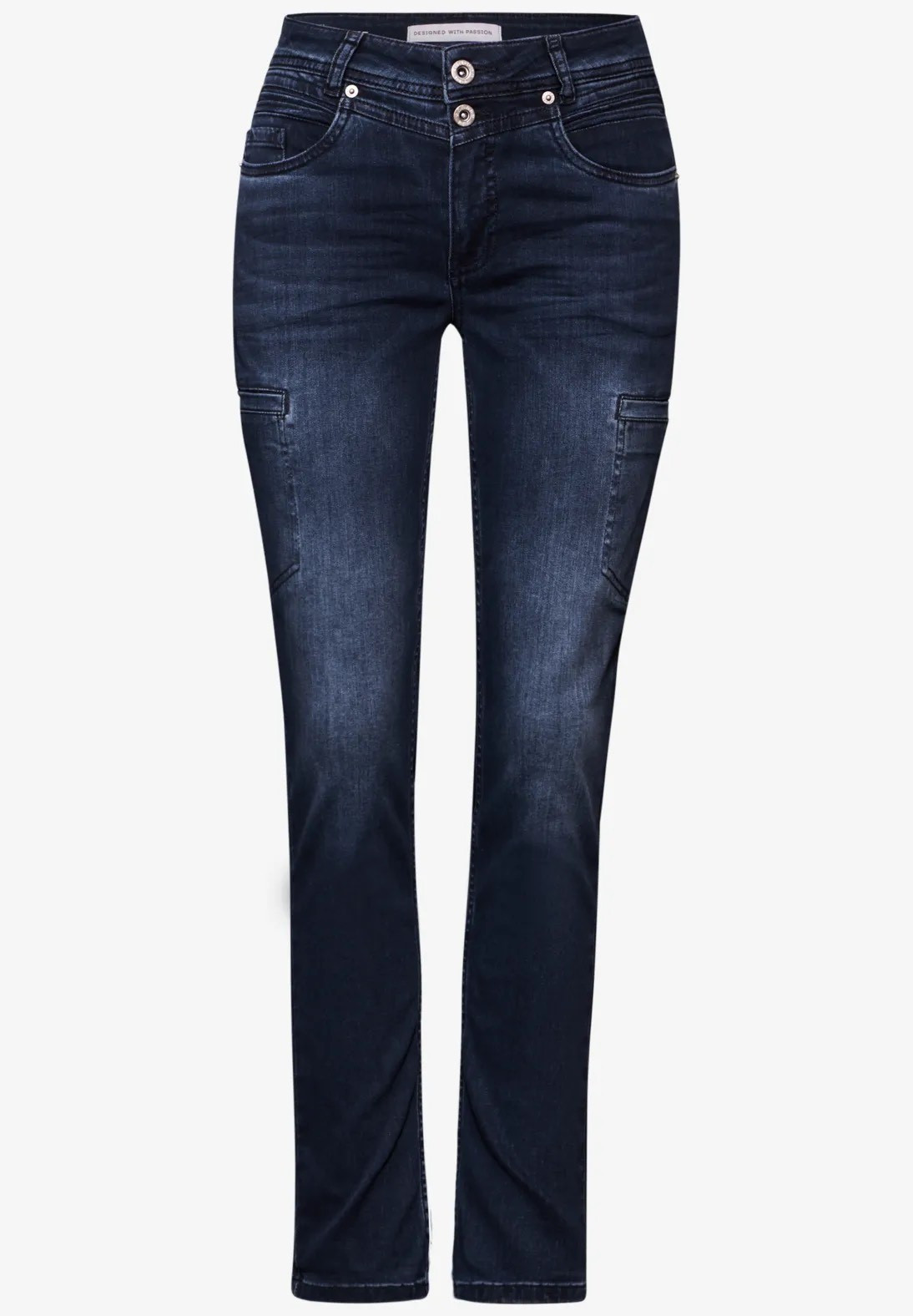Le jeans cargo de Street One pour femmes convainc par sa coupe loose, sa taille moyenne et ses jambes slim. Les poches pratiques au look cargo et le délavage noir et bleu lui confèrent un style cool et urbain. Le mélange de coton avec une part de stretch assure une coupe confortable.