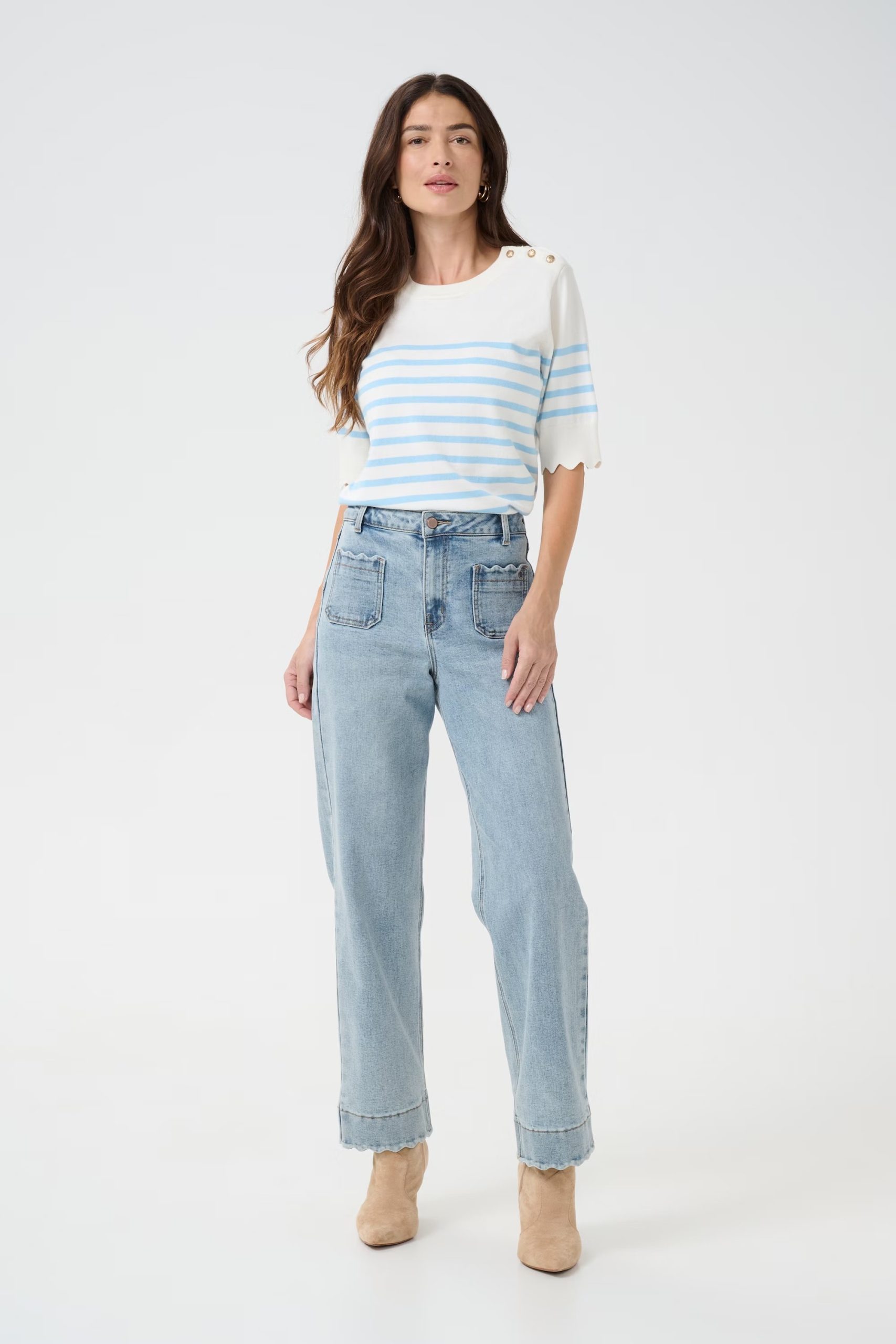 Ce jean Cream offre une coupe droite, une taille haute et une longueur intégrale. Réalisé en matériau de grande qualité qui garantit sa durabilité, ce jean est idéal pour un usage quotidien. Il mettra en valeur votre silhouette tout en flattant votre style. Ce travail magnifique au niveau des poches et des ourlets est hyper original, il va moderniser votre garde-robe.