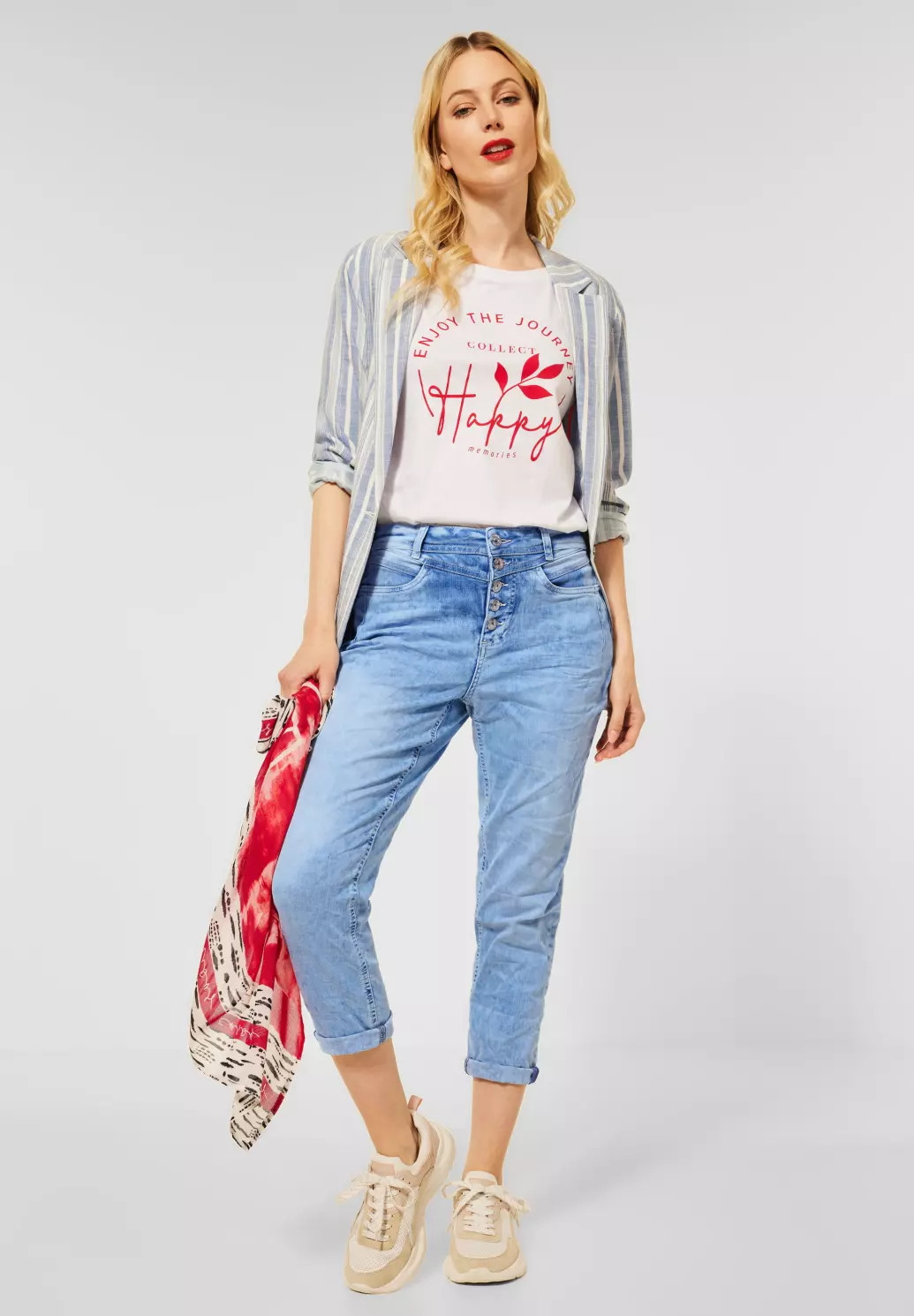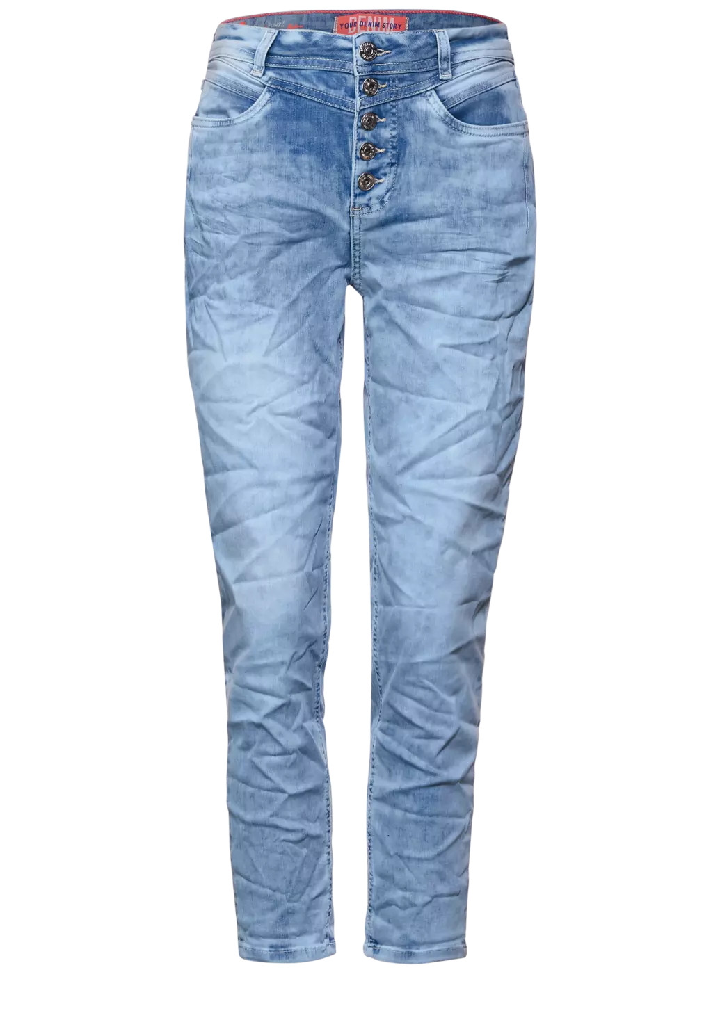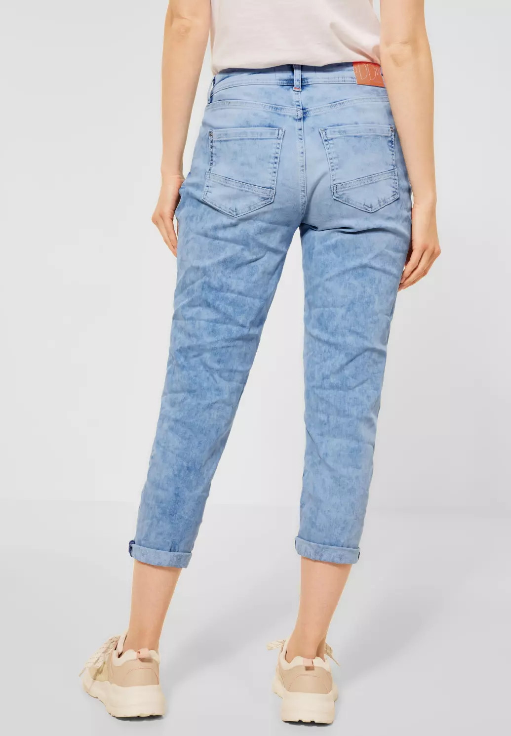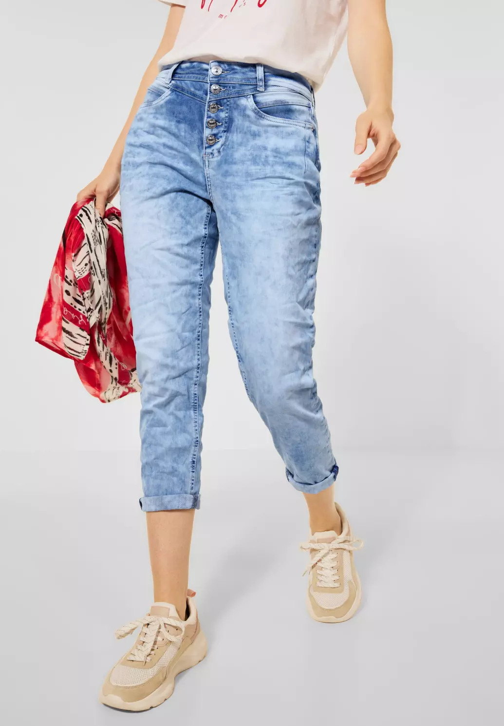 "Pièce tendance ! Ce jean femmes dans le style Mom de Street One séduit avec sa loose fit décontractée. Sa high waist et ses tapered legs étroites lui donnent son look caractéristique. Avec son délavage bleu clair, il se prête à de multiples combinaisons en été. Ce style 4 poches est complété par une fermeture à 5 boutons."
