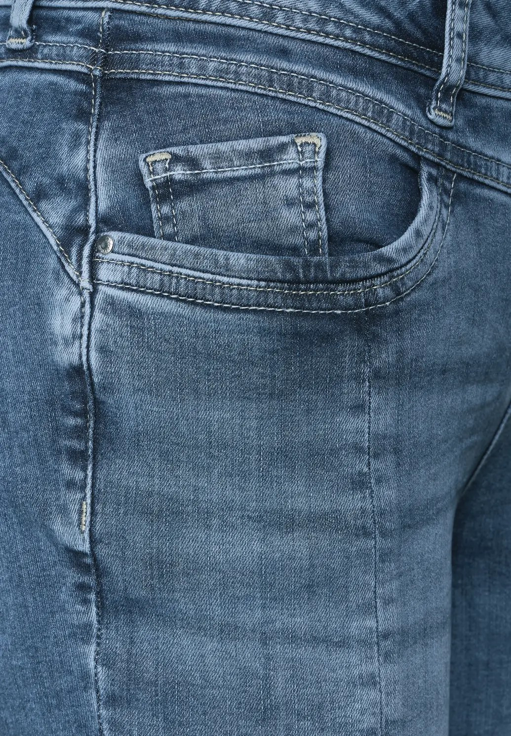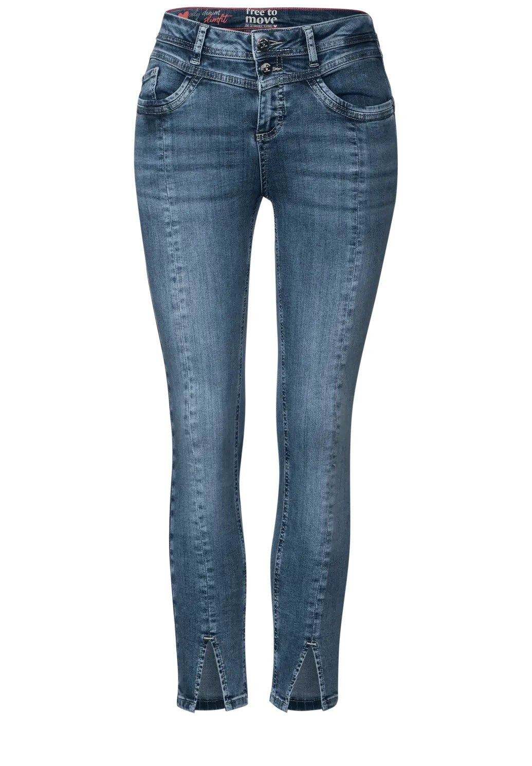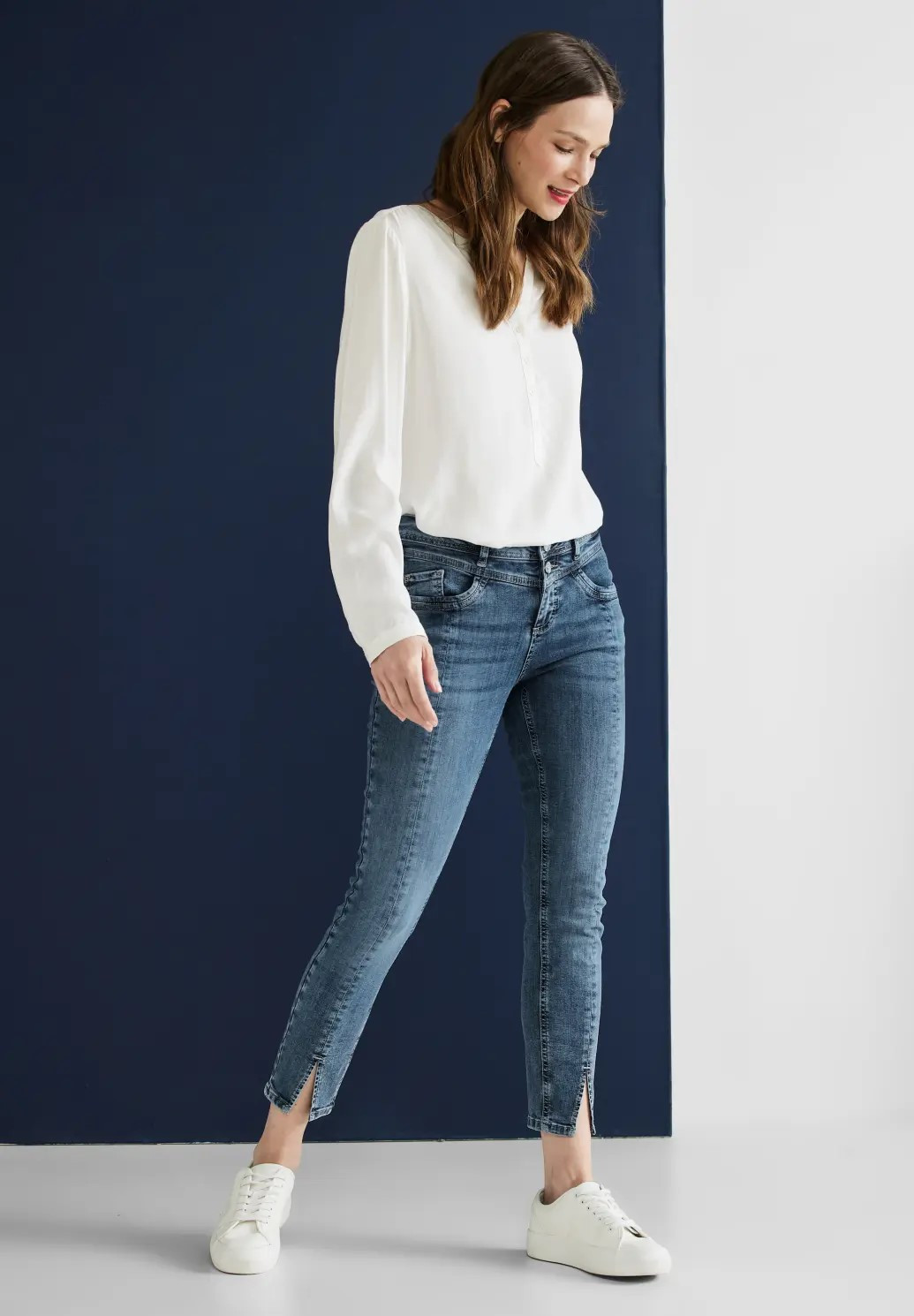 Un jean confortable ! Avec sa coupe 5 poches, le jeans slim pour femmes modèle York de Street One présente un style cool. La coupe slim à taille haute est très féminine et met les courbes en valeur. Le délavage indigo doux présente un bleu classique qui va avec tout. Ce jean de la gamme Denim free to move est particulièrement confortable grâce à sa matière très extensible. Une petite fente au bas des jambes lui confère une allure moderne et attire le regard.