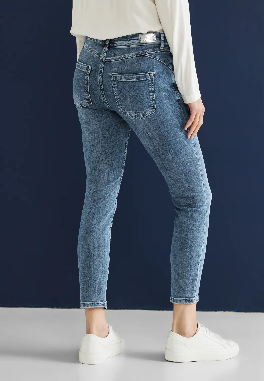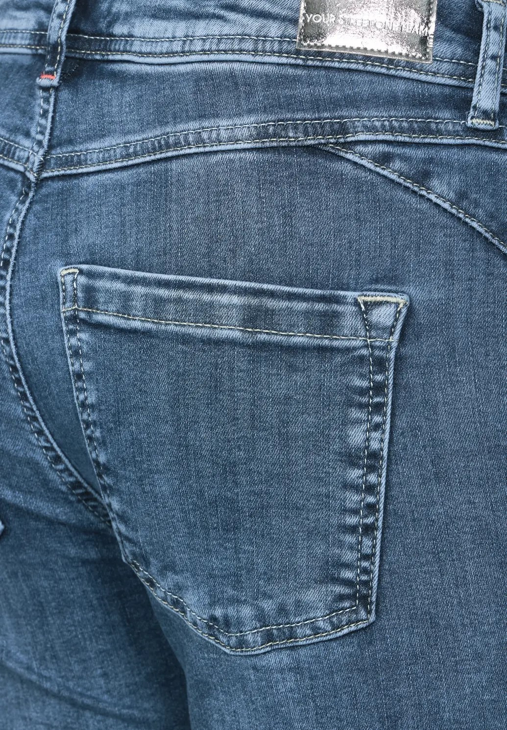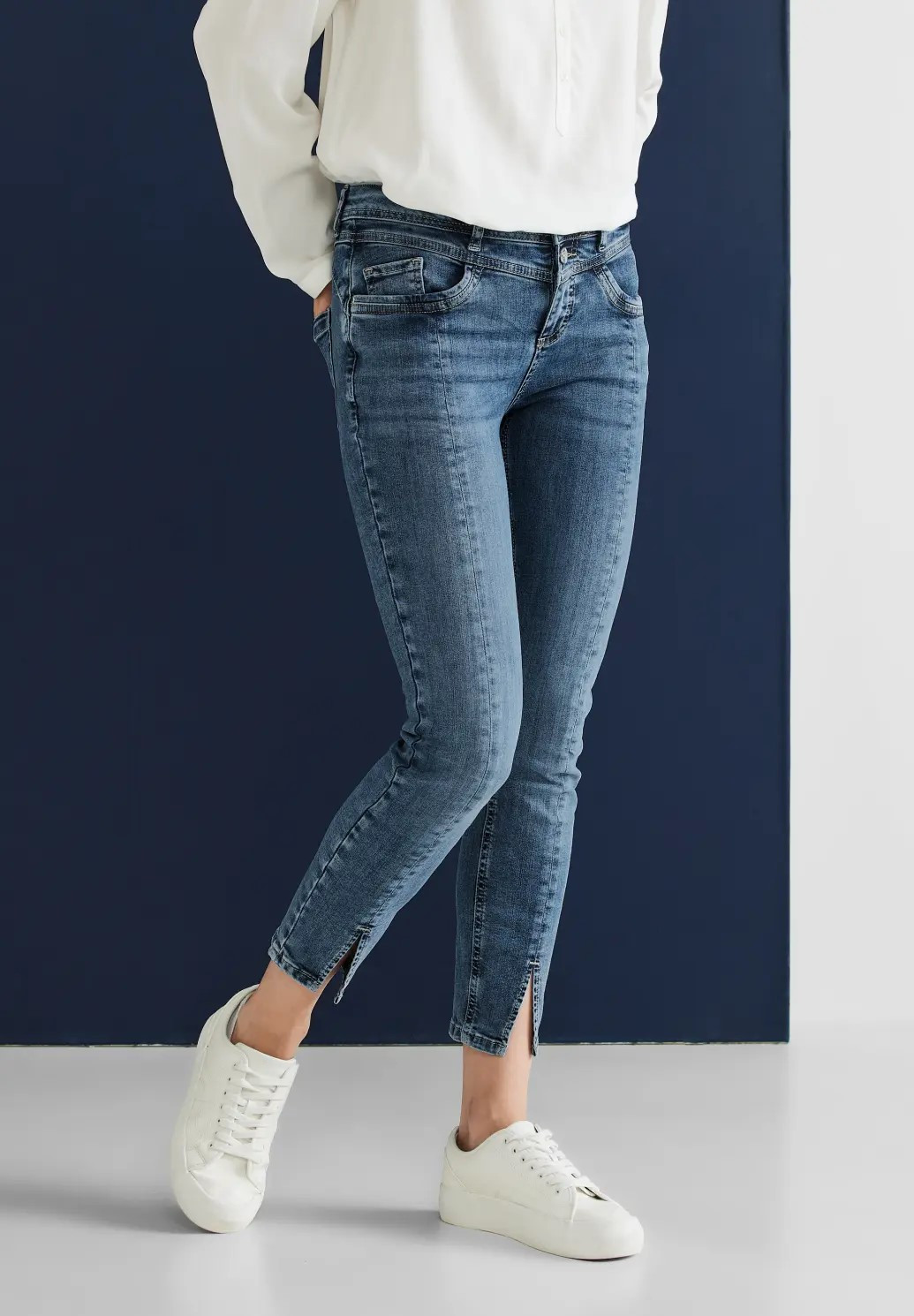 Un jean confortable ! Avec sa coupe 5 poches, le jeans slim pour femmes modèle York de Street One présente un style cool. La coupe slim à taille haute est très féminine et met les courbes en valeur. Le délavage indigo doux présente un bleu classique qui va avec tout. Ce jean de la gamme Denim free to move est particulièrement confortable grâce à sa matière très extensible. Une petite fente au bas des jambes lui confère une allure moderne et attire le regard.