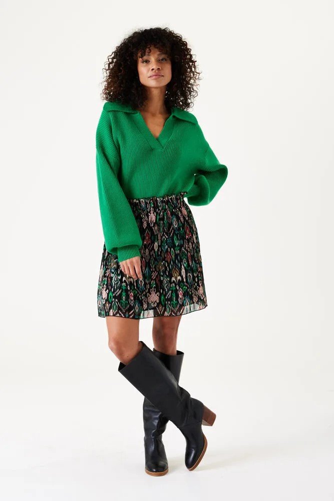 Tendances : Jupe, Longueur mini, Tissu recyclé, Imprimé allover, Ceinture élastiquée.