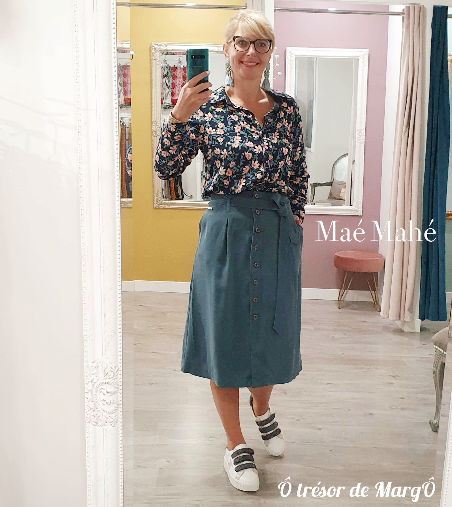 Jupe Juras bleu gris de chez MAÉ MAHÉ, création française