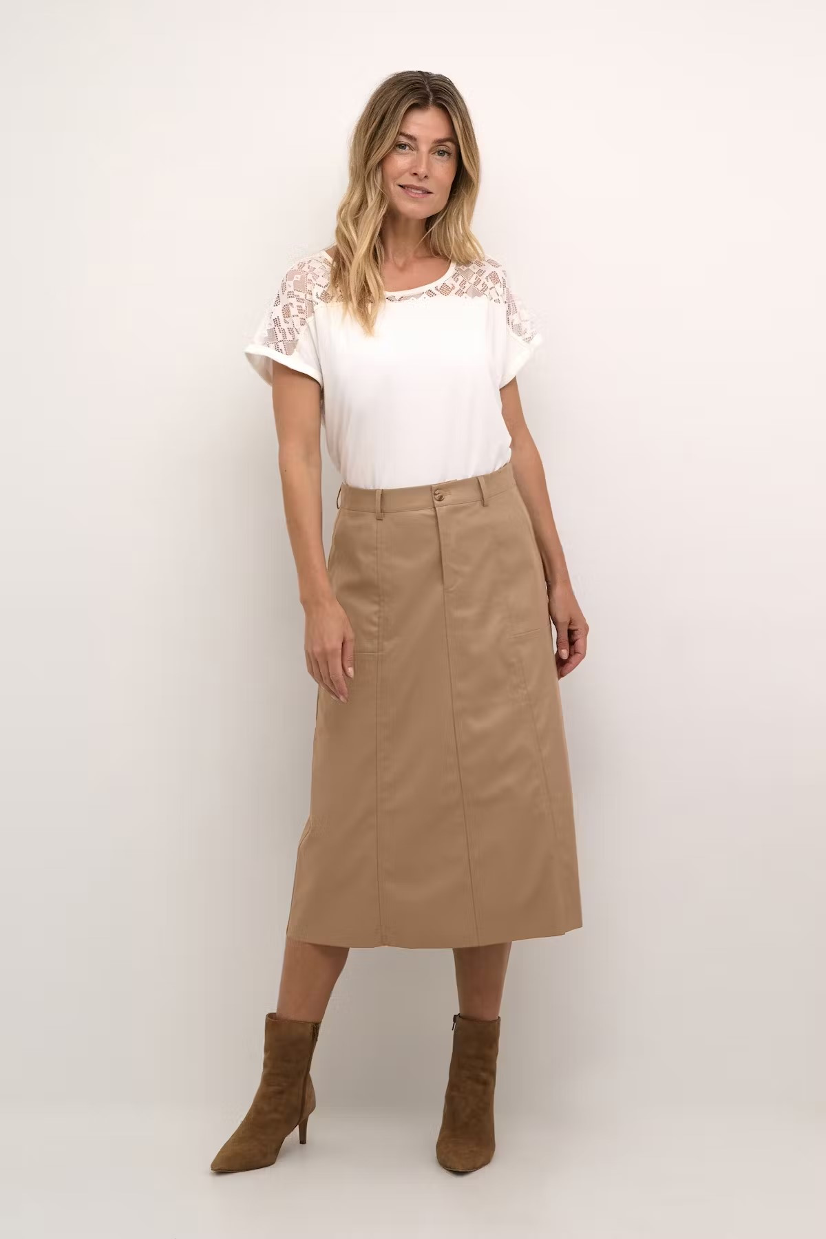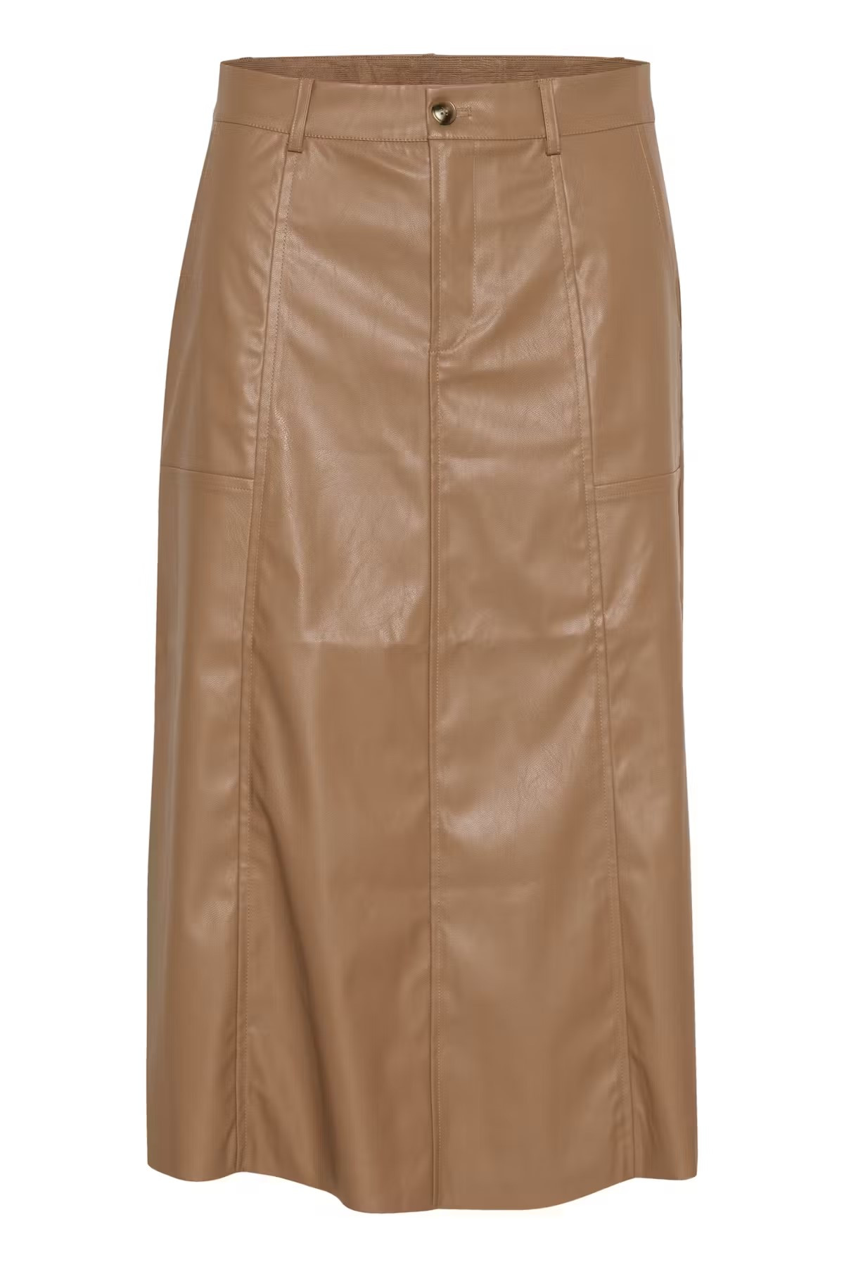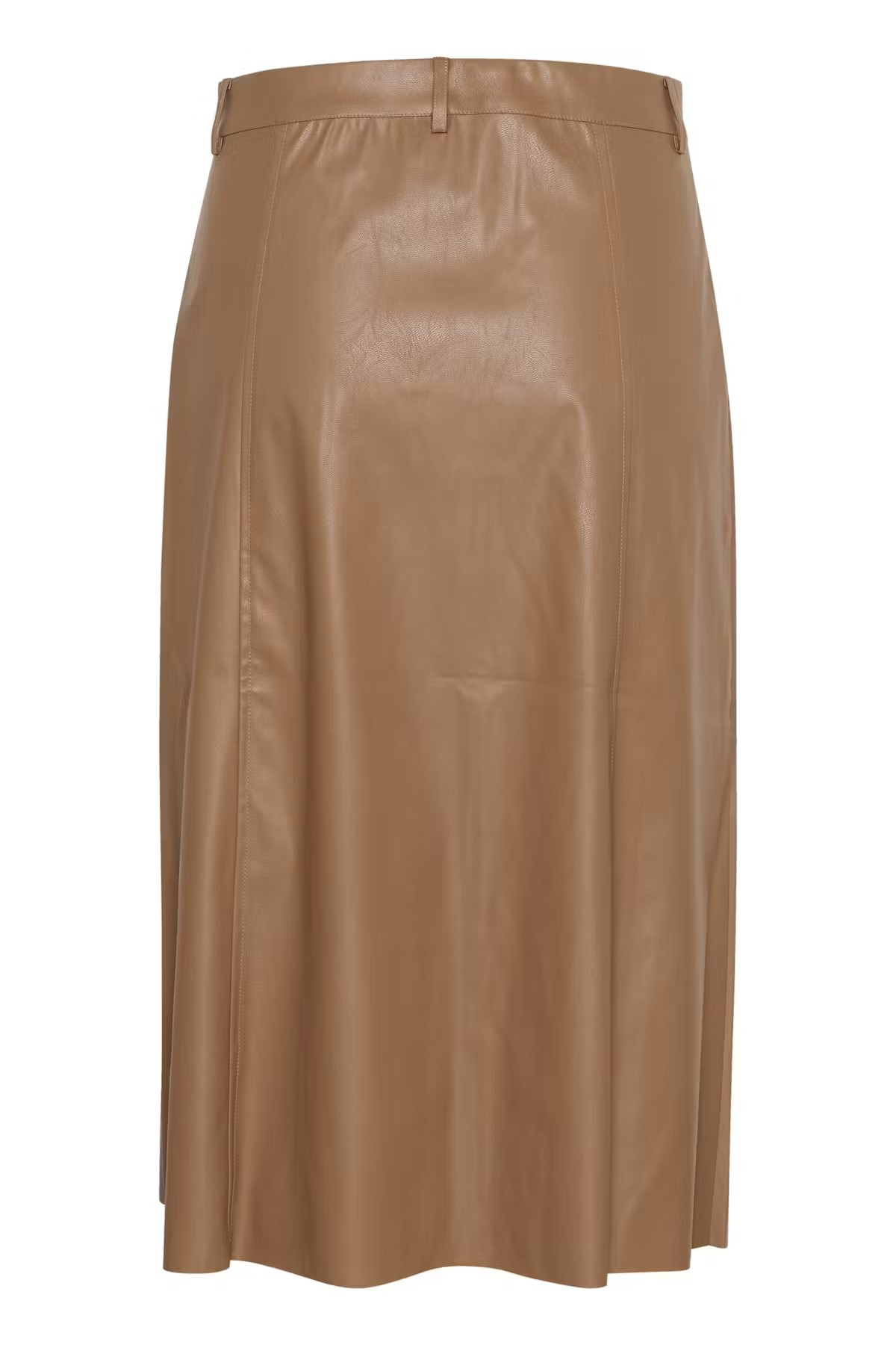 Cette jupe est d'un chic de part sa forme et sa matière. Magnifique jupe très tendance en similicuir camel. Très féminine, vous pourrez la porter avec un pull ou un top à bretelles fines pour un look plus festif. Cette coupe vous changera et vous ira parfaitement !
