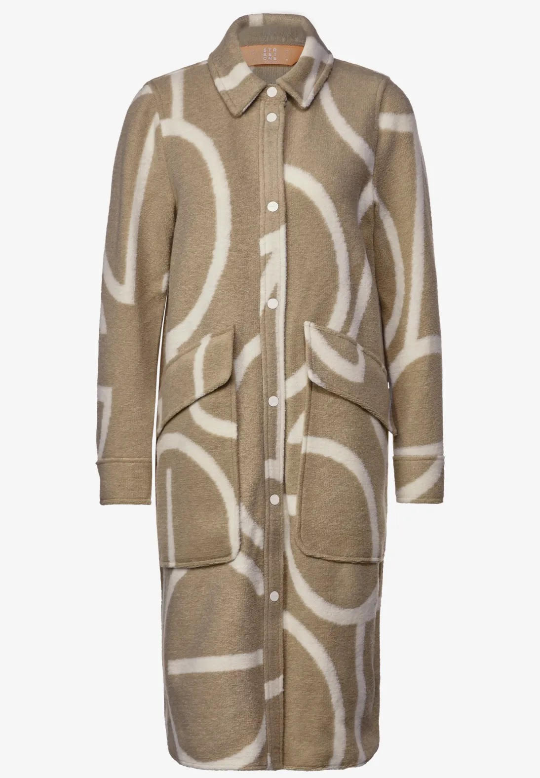 Ce manteau femmes de Street One séduit avec sa part de laine, son col et sa patte de boutonnage ainsi que ses grandes poches. Ce manteau mi-saison est polyvalent pour des tenues élégantes et sa doublure intérieure assure un grand confort. Avec son joli motif écriture et ses détails pratiques, ce manteau est le choix idéal pour les femmes qui apprécient à la fois le style et le confort.