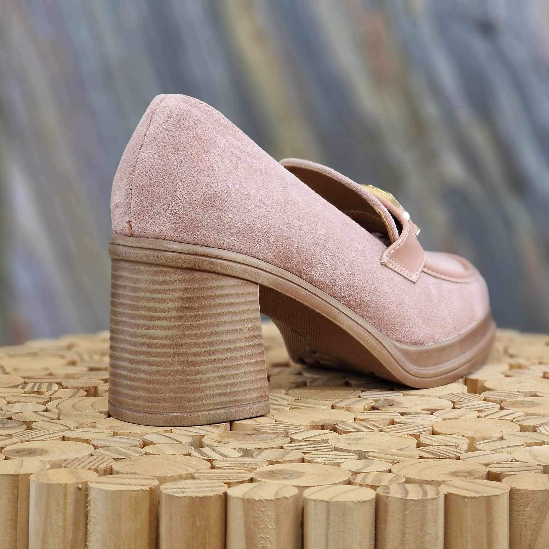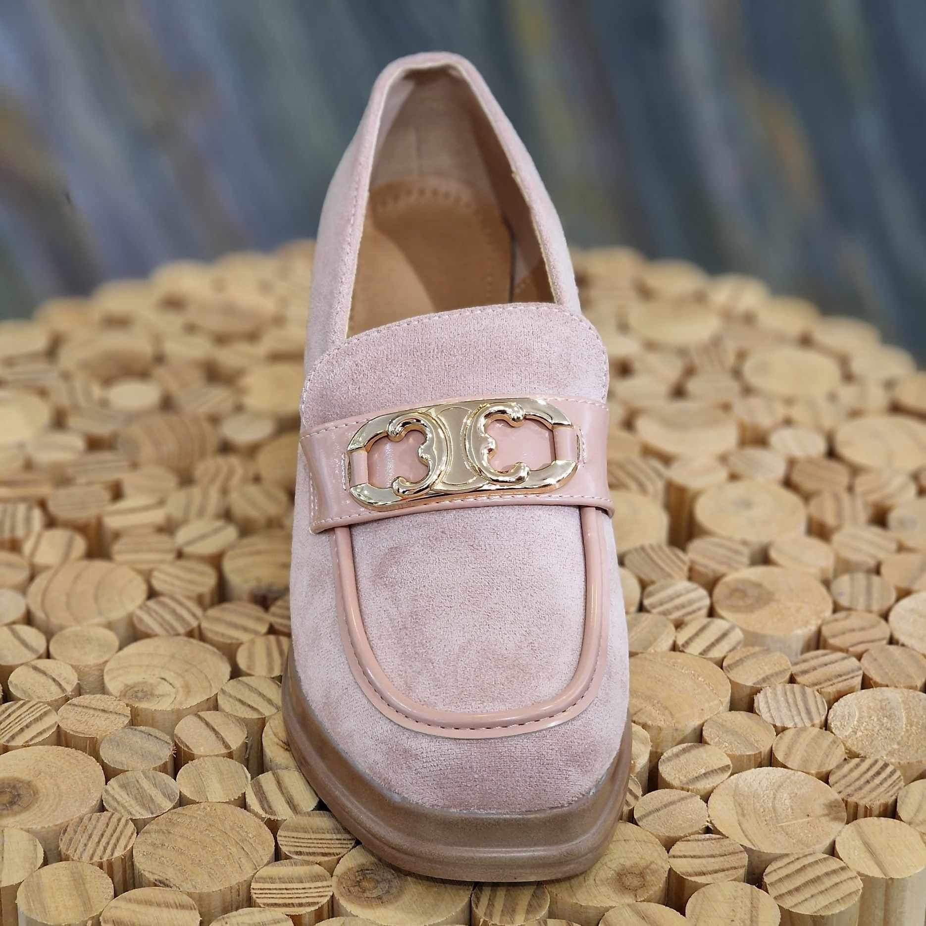 Mocassin à talon rose