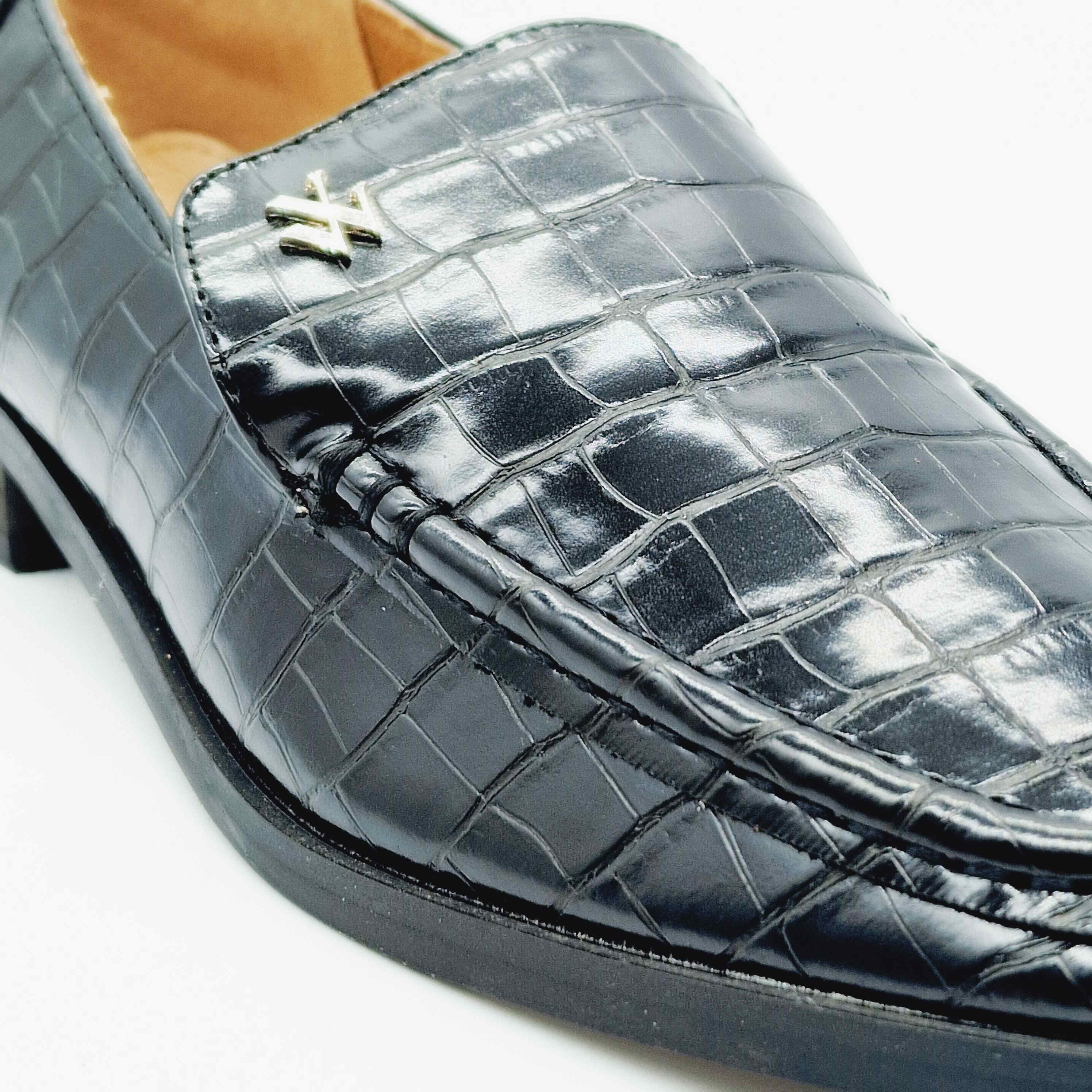 - Mocassin Vanessa Wu en similicuir noir effet crocrodile