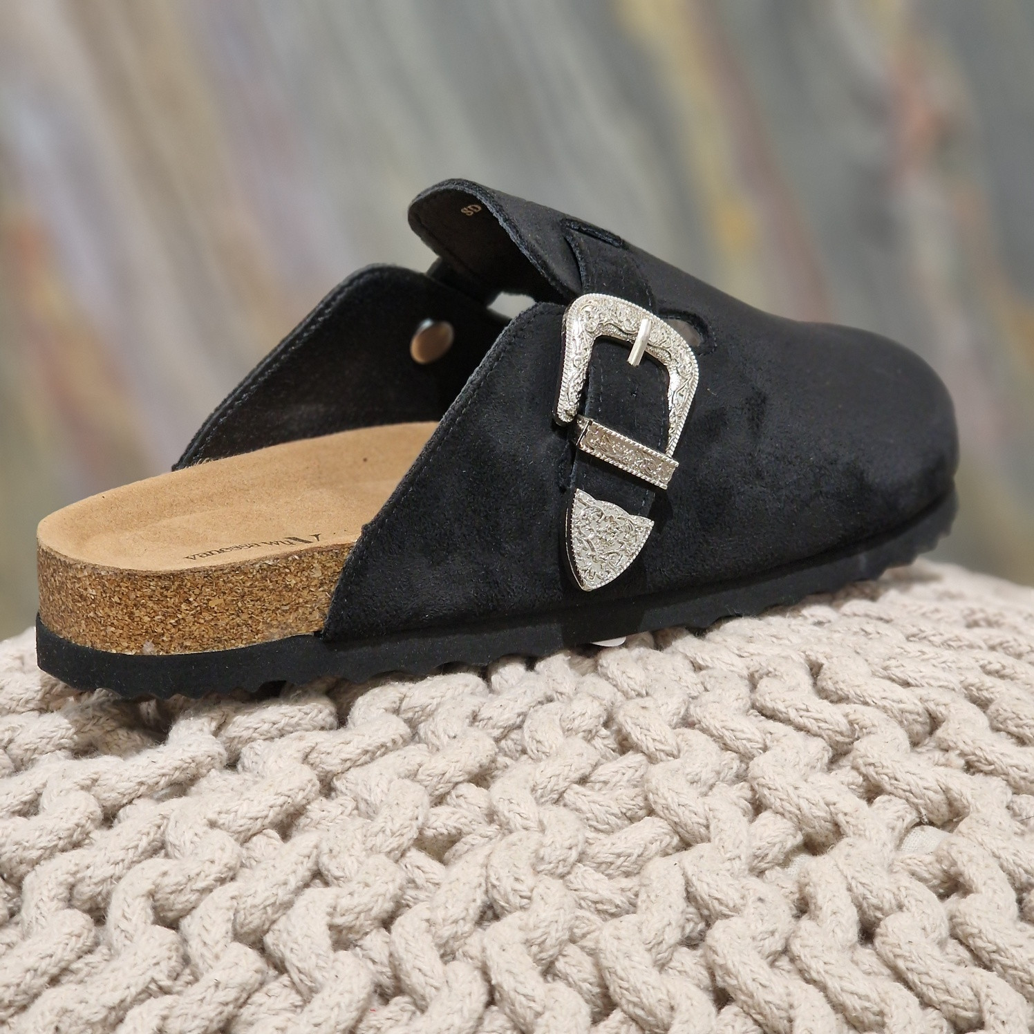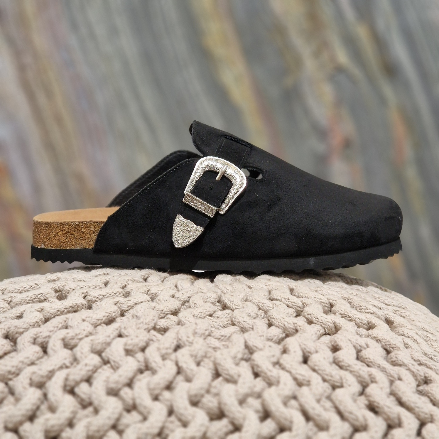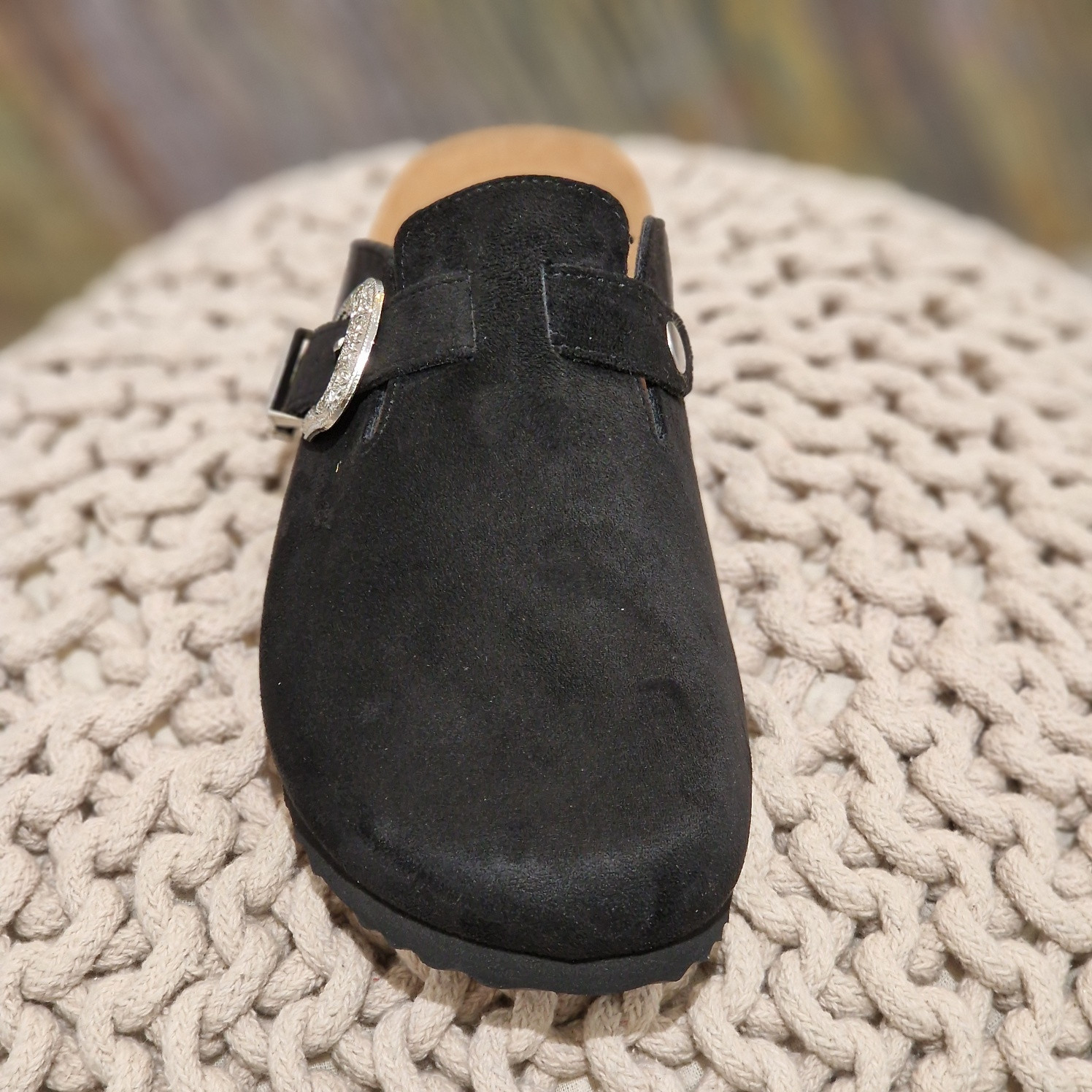 - Mules plates en suédine noire