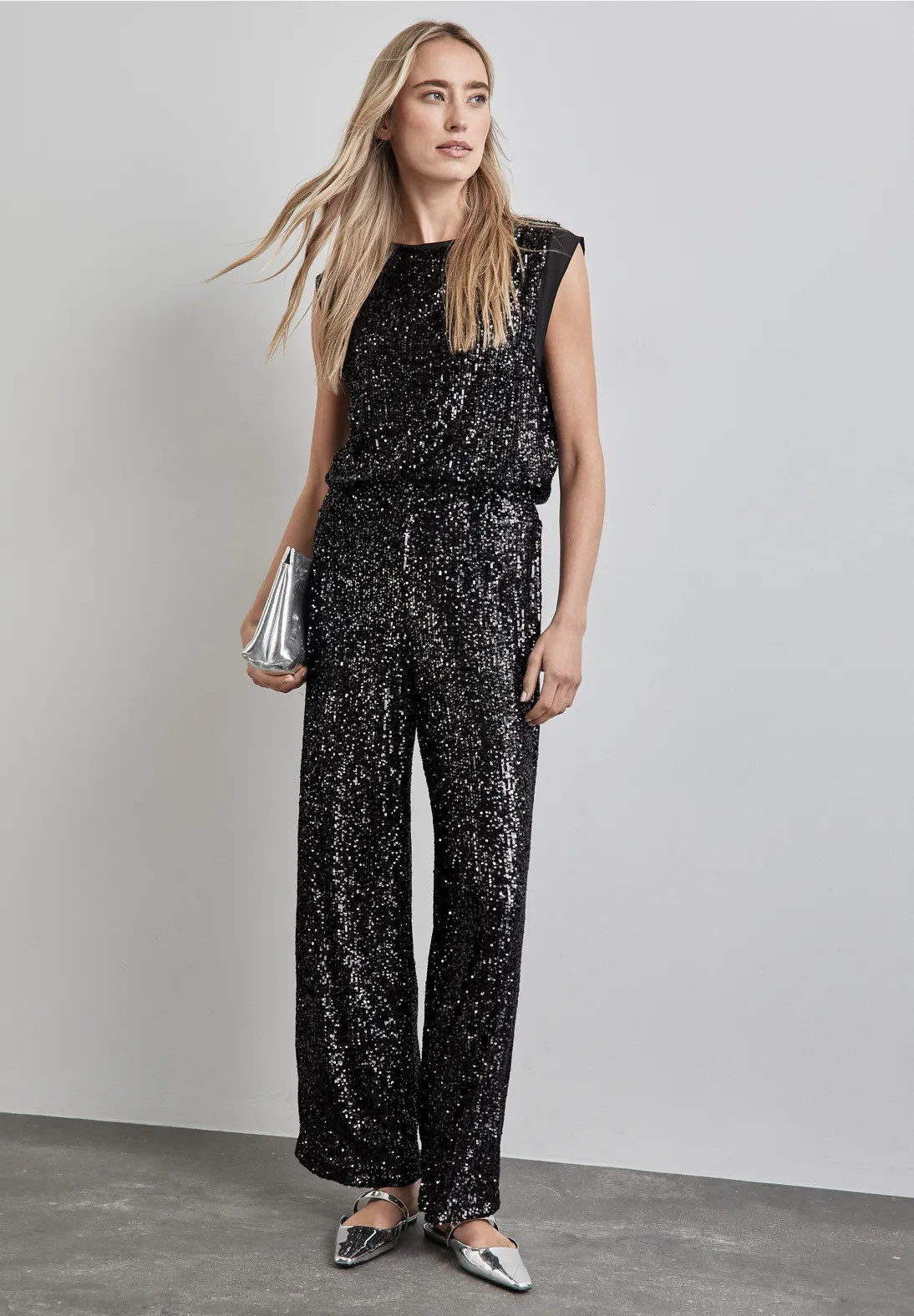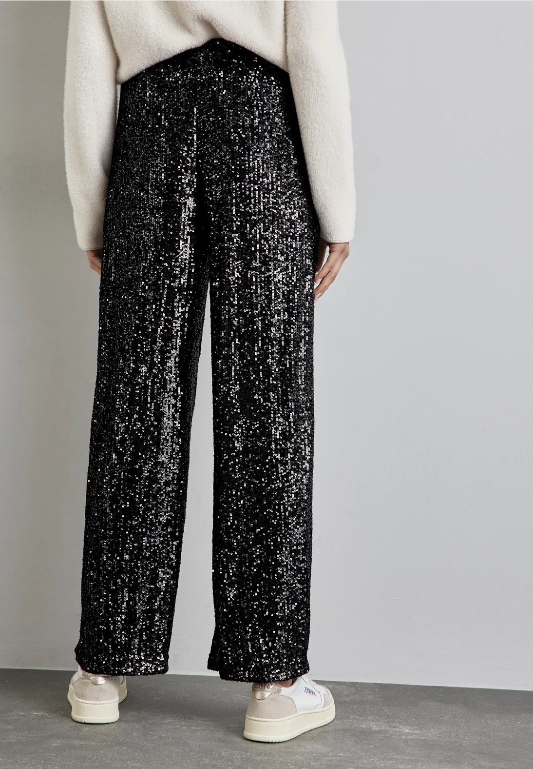 Ce pantalon de Street One pour femmes apporte du glamour à ton look. Les paillettes scintillantes et la coupe loose en font une pièce maîtresse stylée. Avec sa taille haute et ses jambes droites, il offre une coupe confortable.