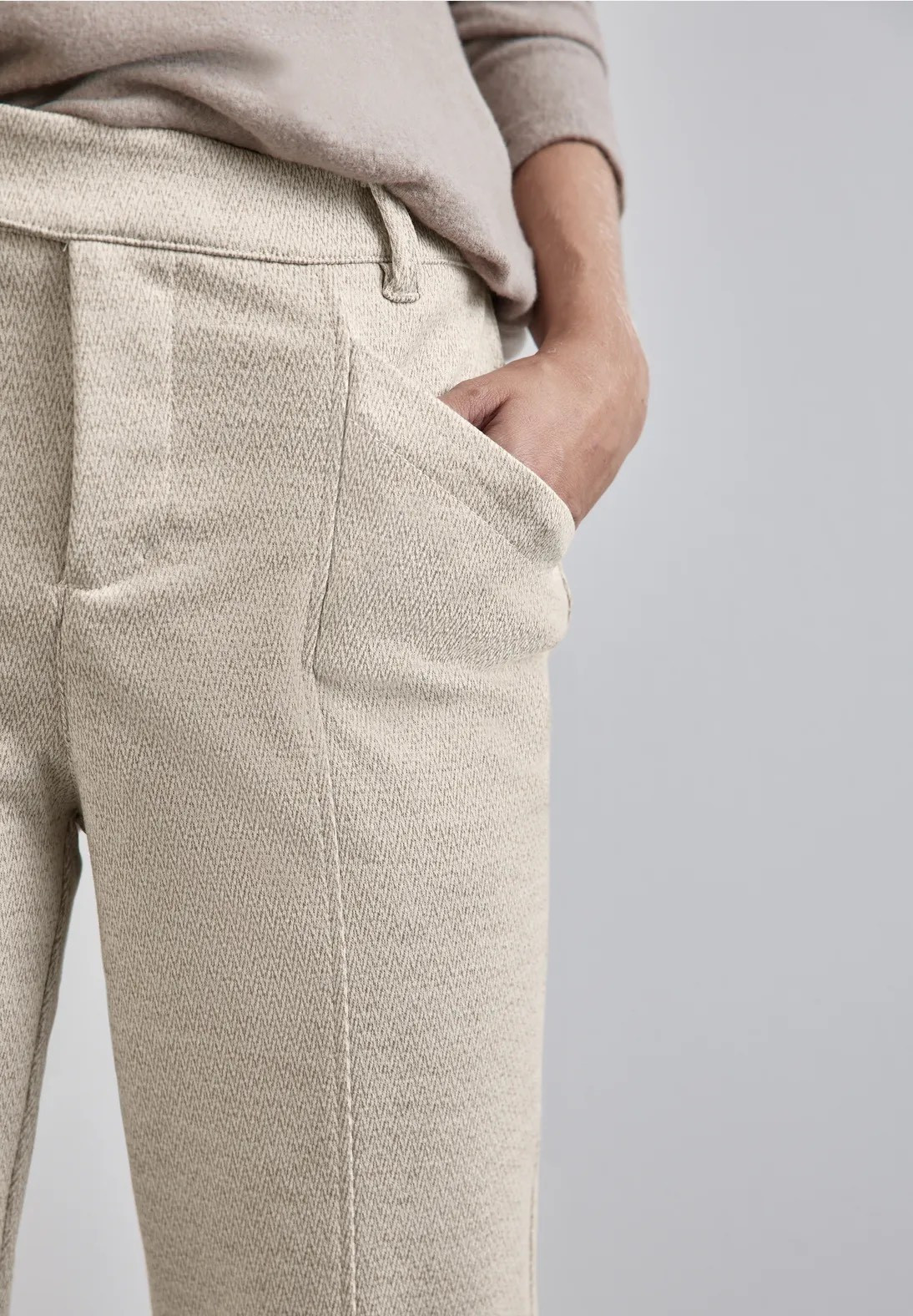 Le pantalon Casual Fit de Street One pour femmes est un pantalon à motifs avec une taille haute et un bouton décalé. Le mélange de matières avec une part de stretch et les poches latérales assurent un grand confort. Un compagnon à la mode pour tous les jours.