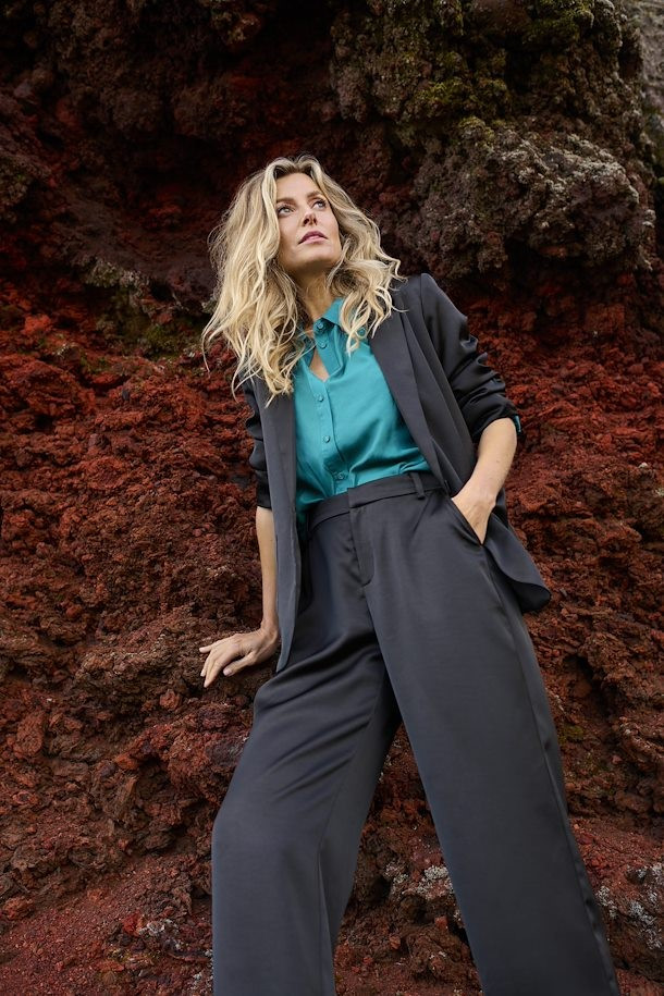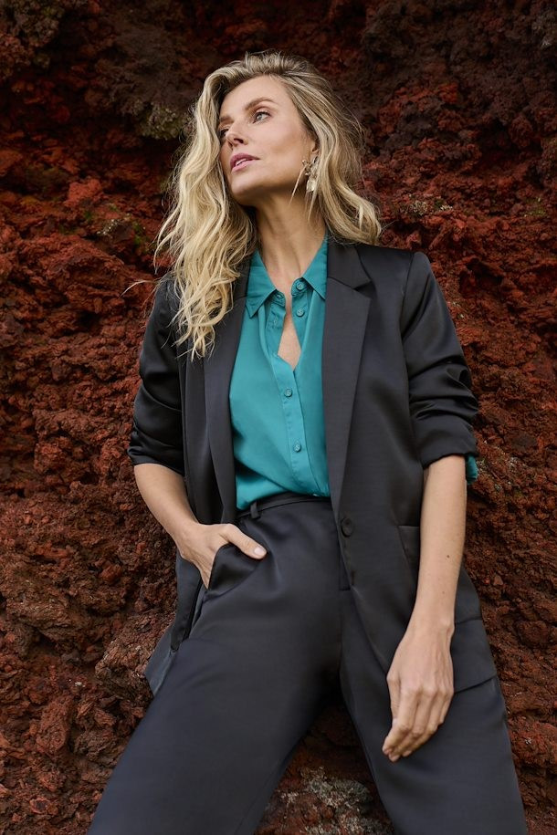 Tendances : Pantalon, Satiné, Coupe droite, Poches passepoilées.