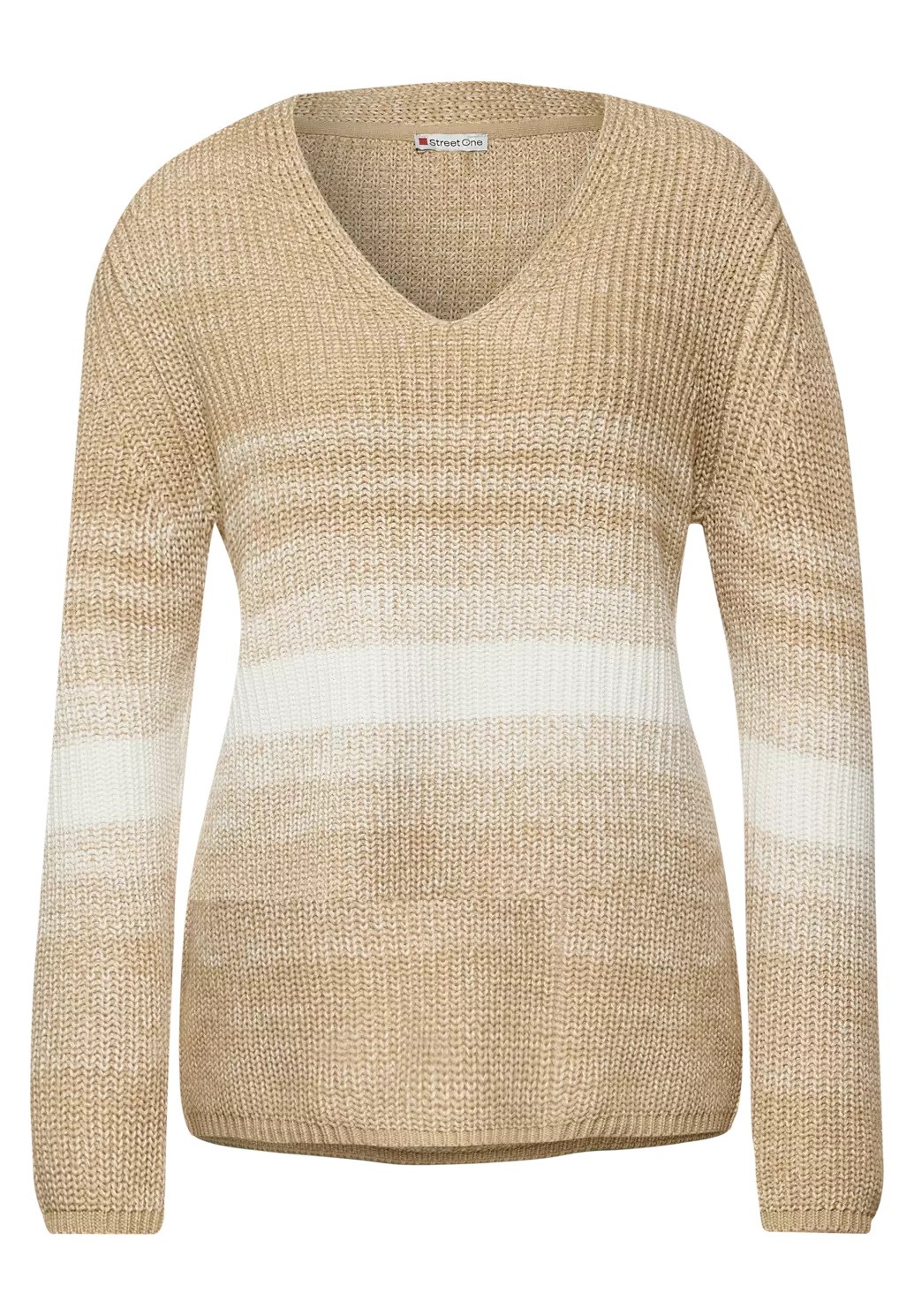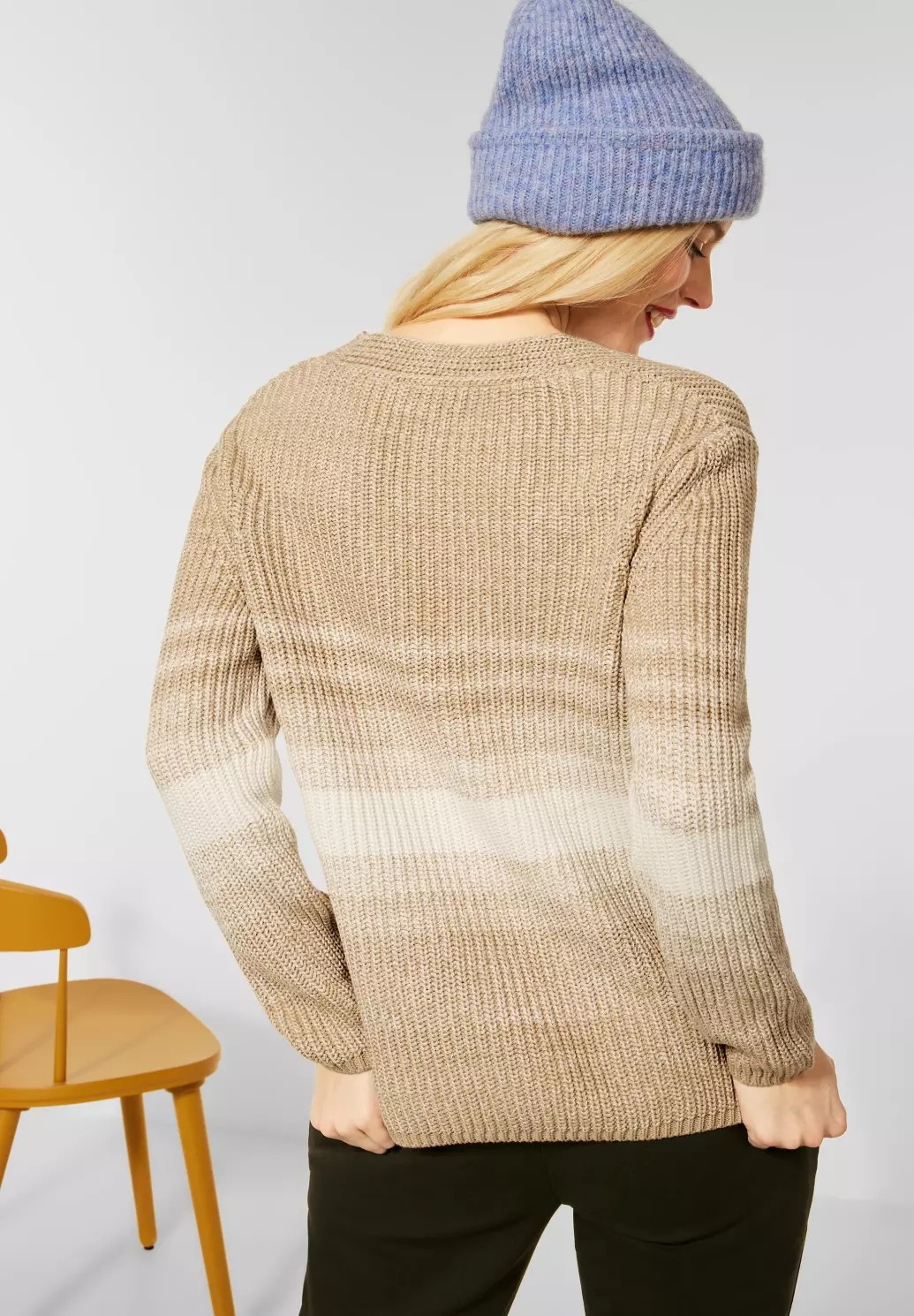 "Parfait pour l'hiver ! Ce pullover en maille pour femme de Street One est un accessoire parfait pour les journées froides. Il attirera les regards avec son léger dégradé de couleurs. Les épaules légèrement élargies apportent du confort et le col en V met le décolleté joliment en valeur. Ce pullover est parfaitement complété par les bandes côtelés à l'ourlet et aux manches."