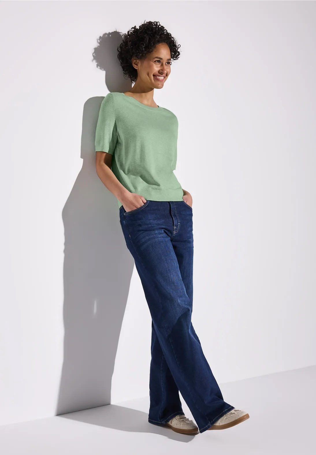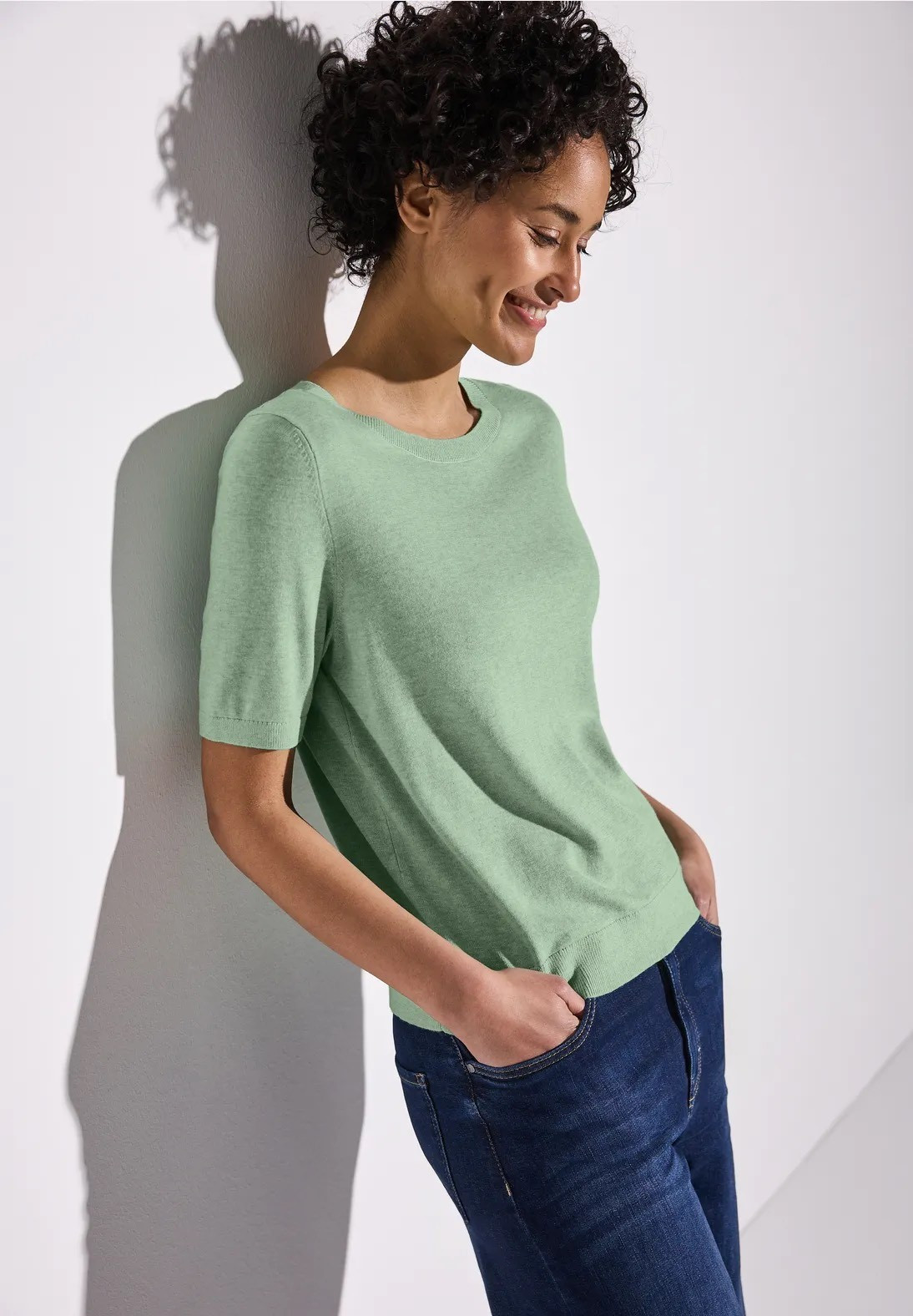 Ce pull-over tricoté de Street One pour femmes avec un col rond classique et des manches courtes est un vrai talent polyvalent. Le doux mélange de viscose le rend agréable à porter.