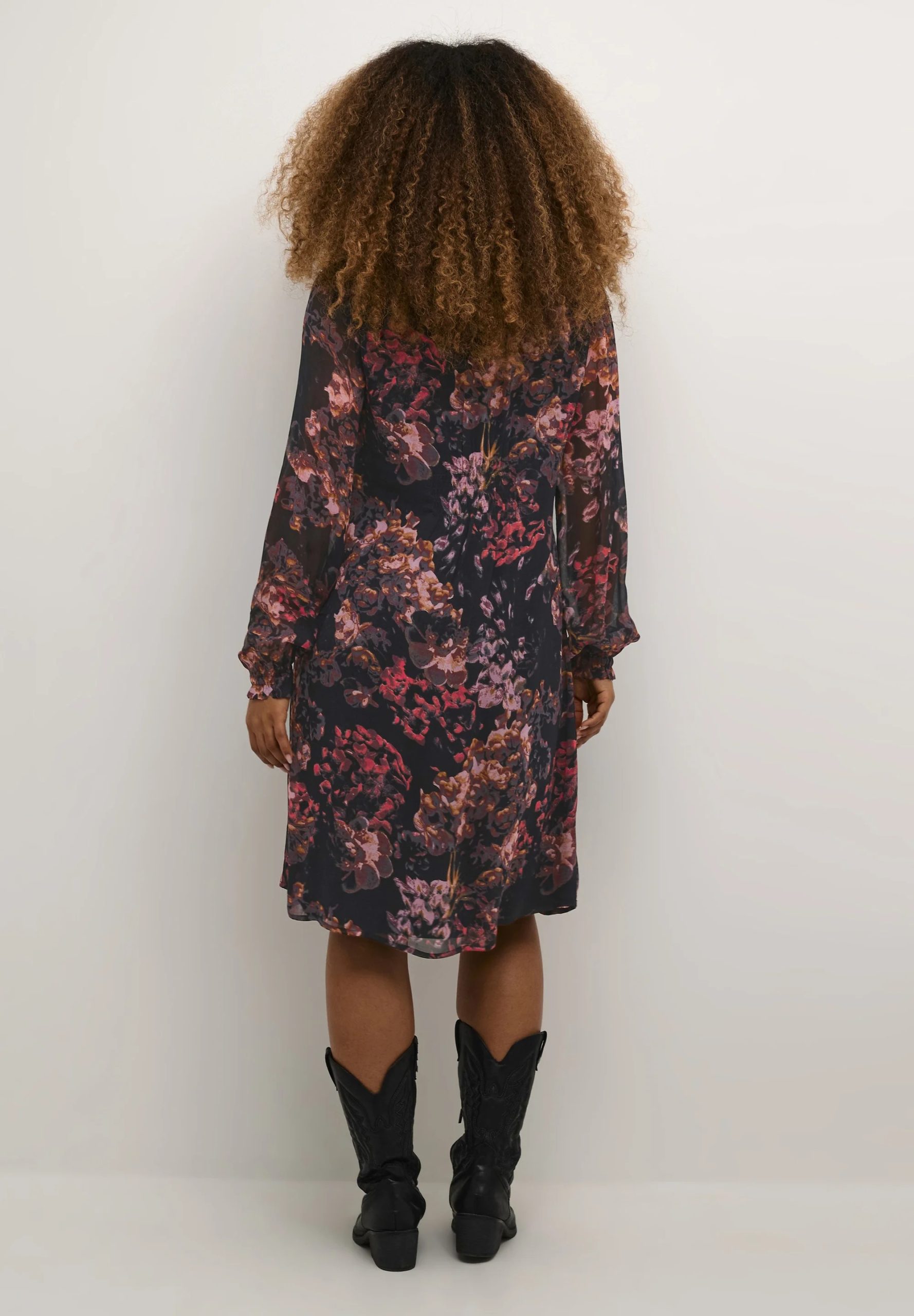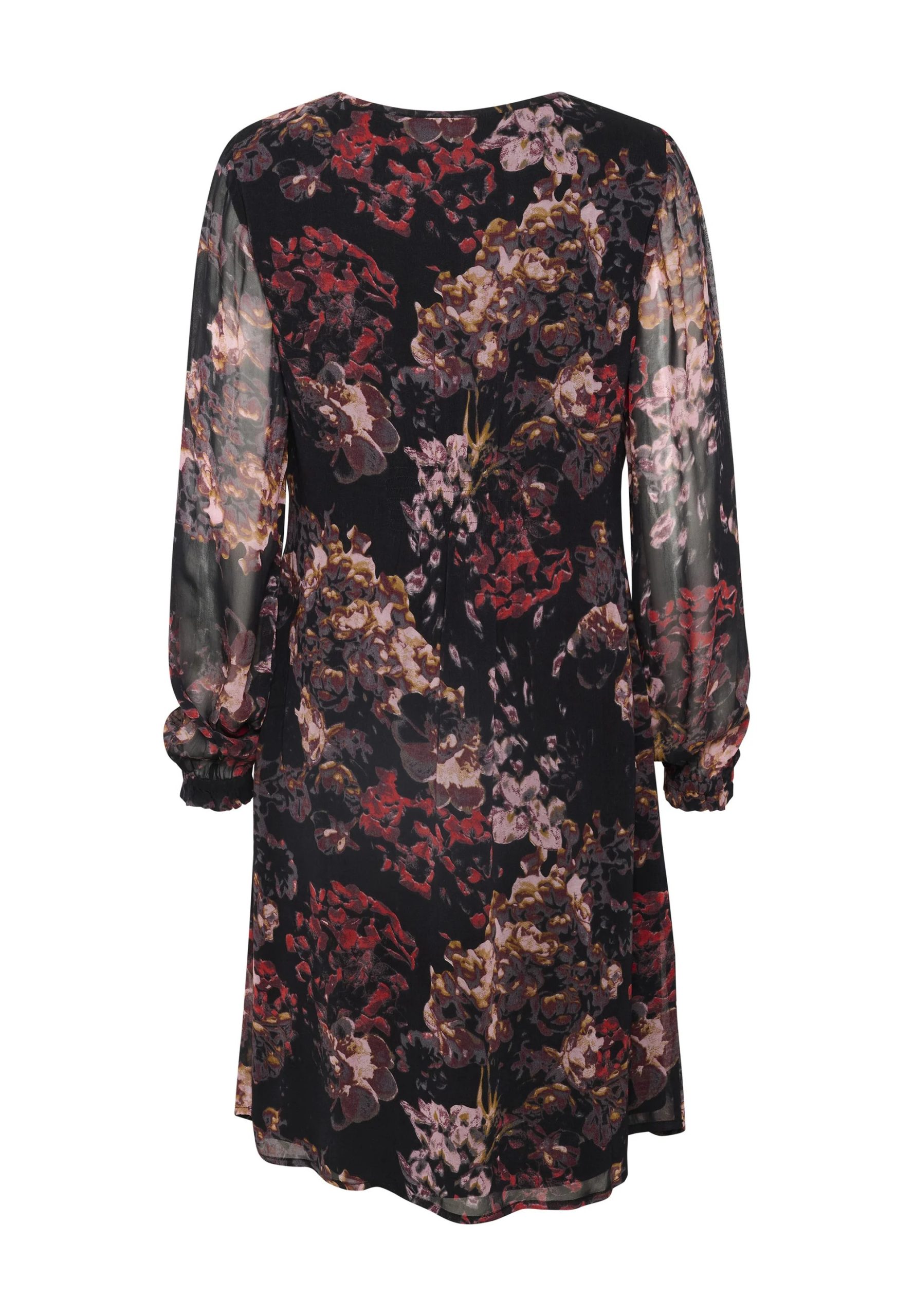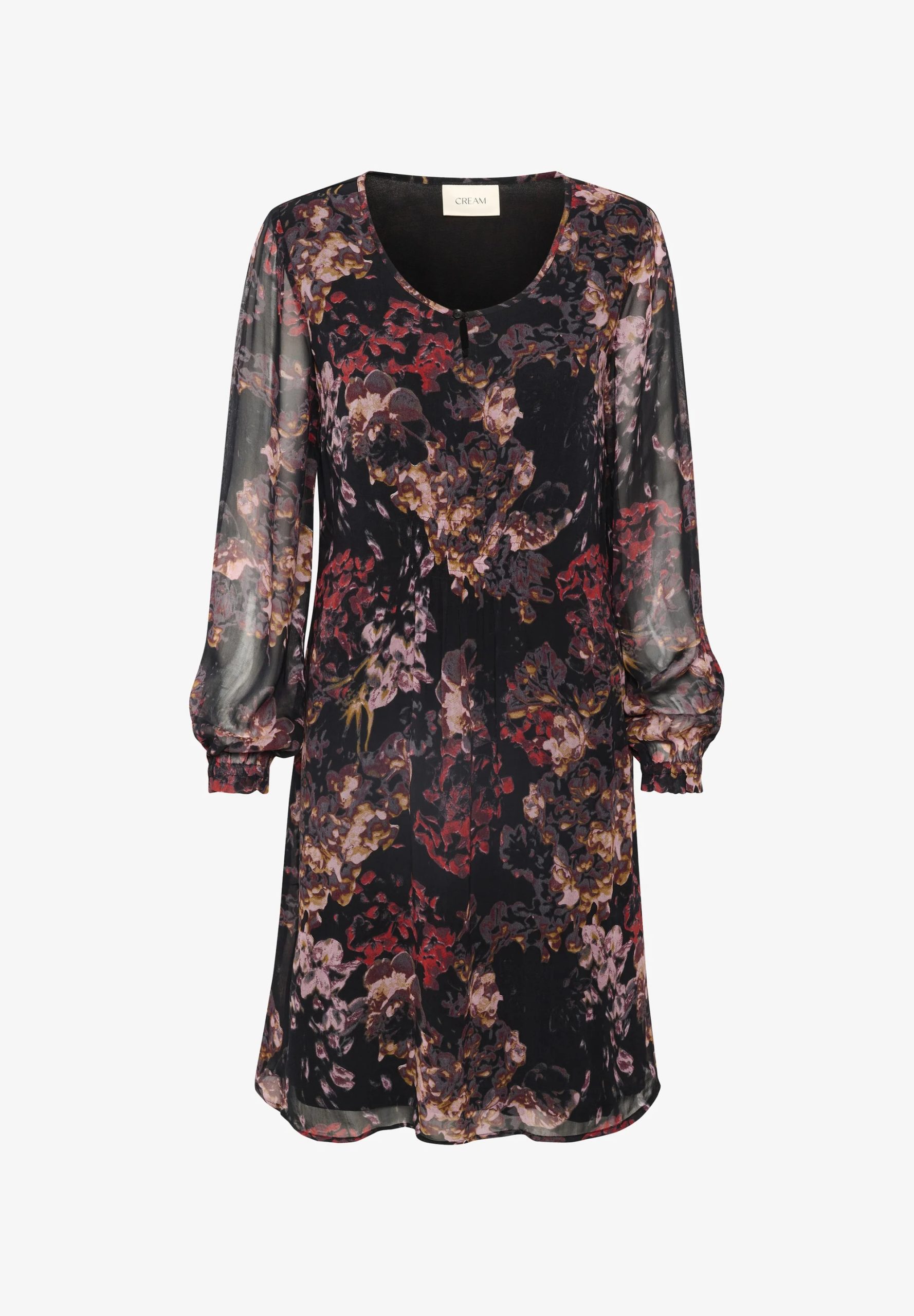 Cette robe fleurie sur fond noir de la marque Cream est très élégante de part sa transparence. Elle a un joli col rond, et est doublée sur le devant et le dos. Les manches travaillées elles restent en transparence. D'une coupe assez cintrée grâce aux smocks qui se trouve sur la taille devant et dos. Elle offre un style affirmé et facile à combiner pour cette saison. Confectionnée en viscose, elle allie qualité et praticité.