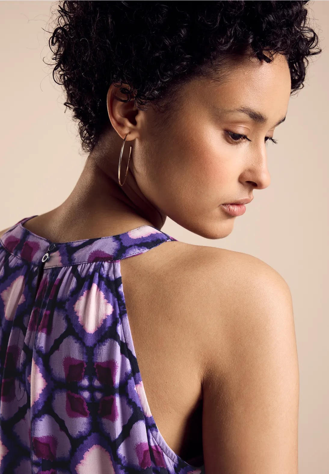Cette robe maxi à imprimé de Street One est une robe d'été qui allie élégance et légèreté. Sa coupe épaules nues lui confère une touche de féminité, tandis que la fente et le bouton dans la nuque offrent des détails raffinés. L'ourlet à volants lui apporte une note de fantaisie, tandis que la qualité viscose agréable assure un confort optimal.