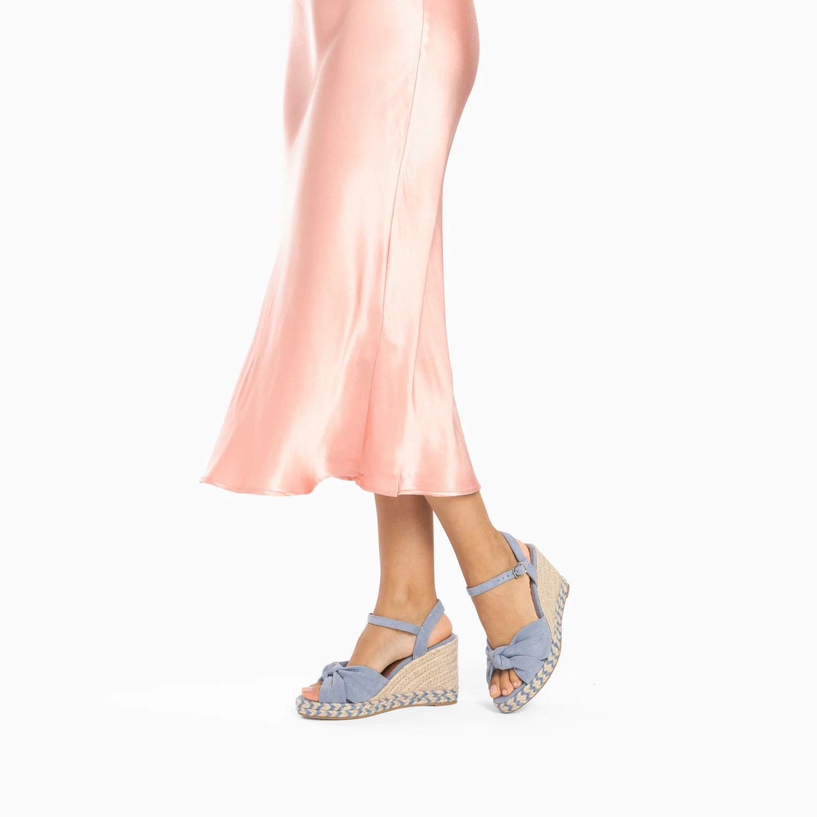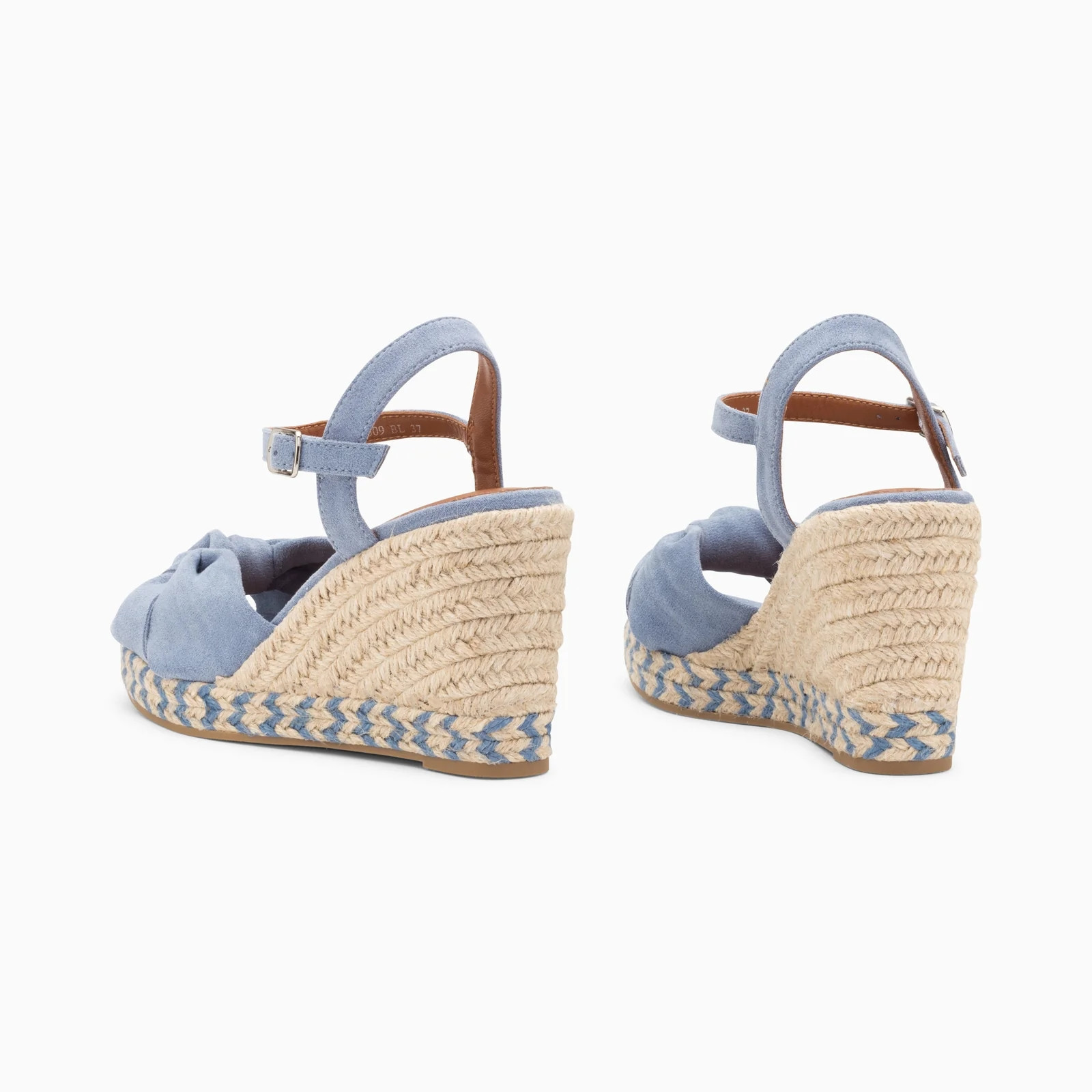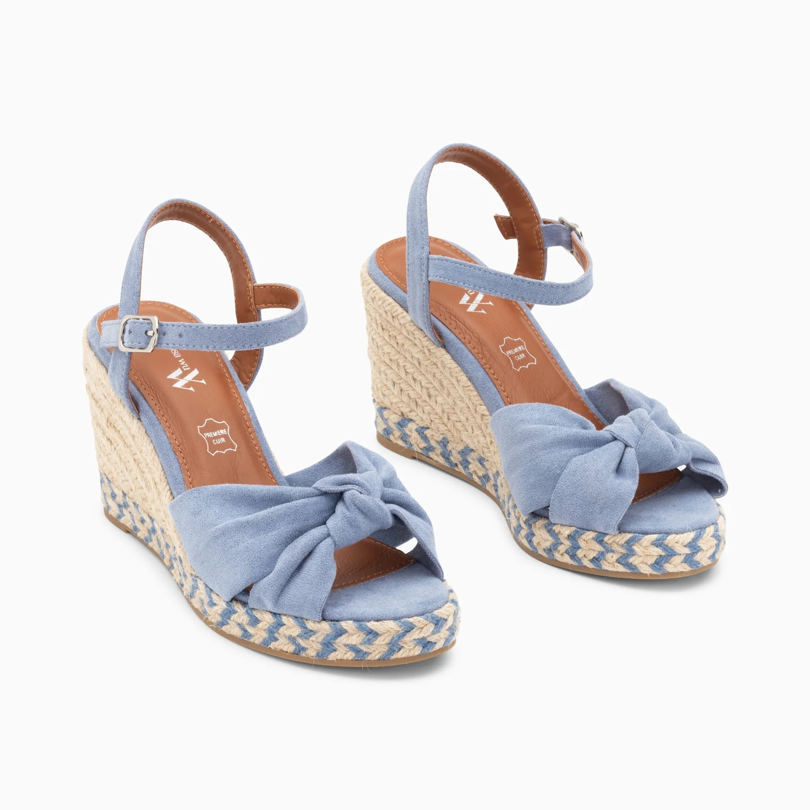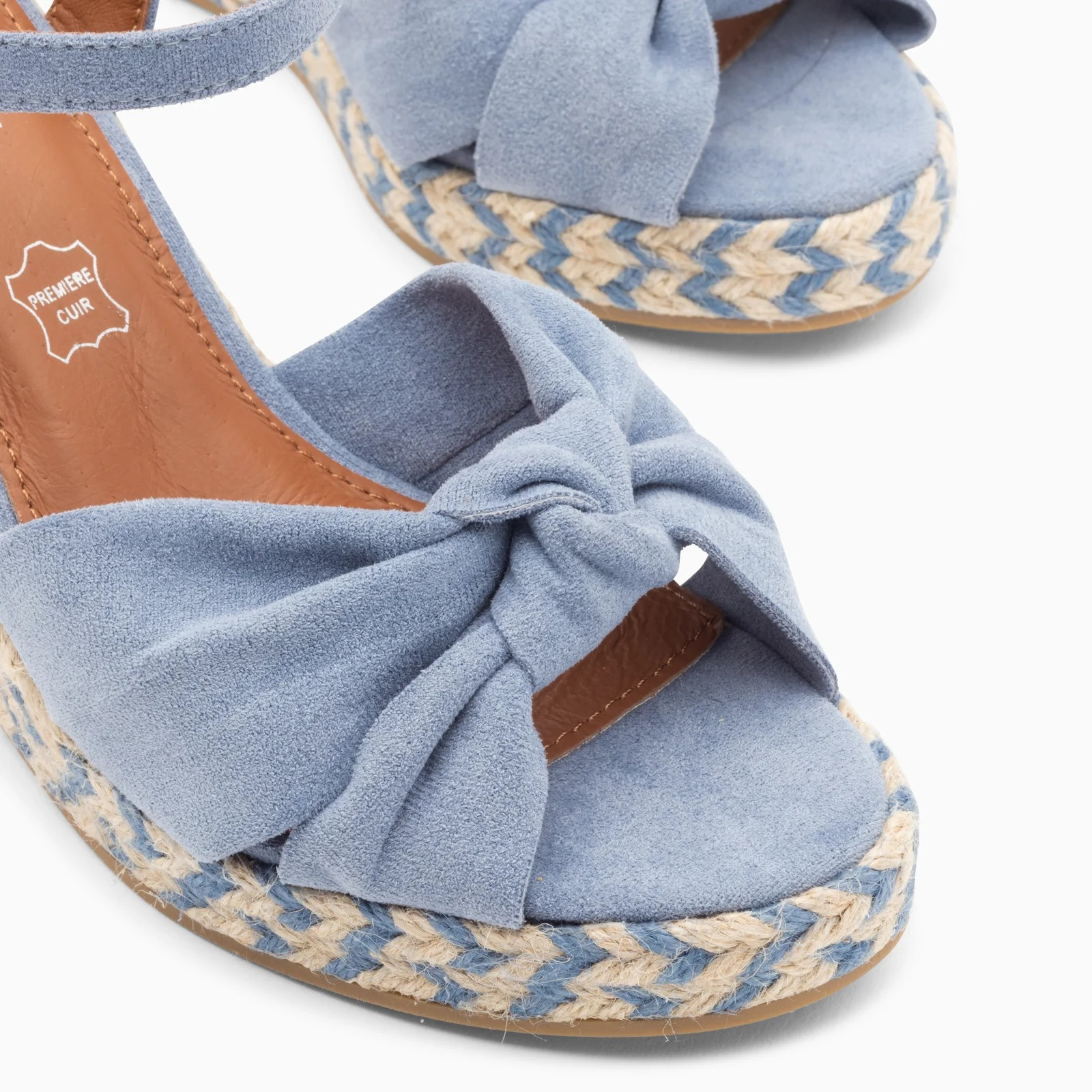 - Semelle compensée en corde, avec plateforme tressée bleu horizon et beige