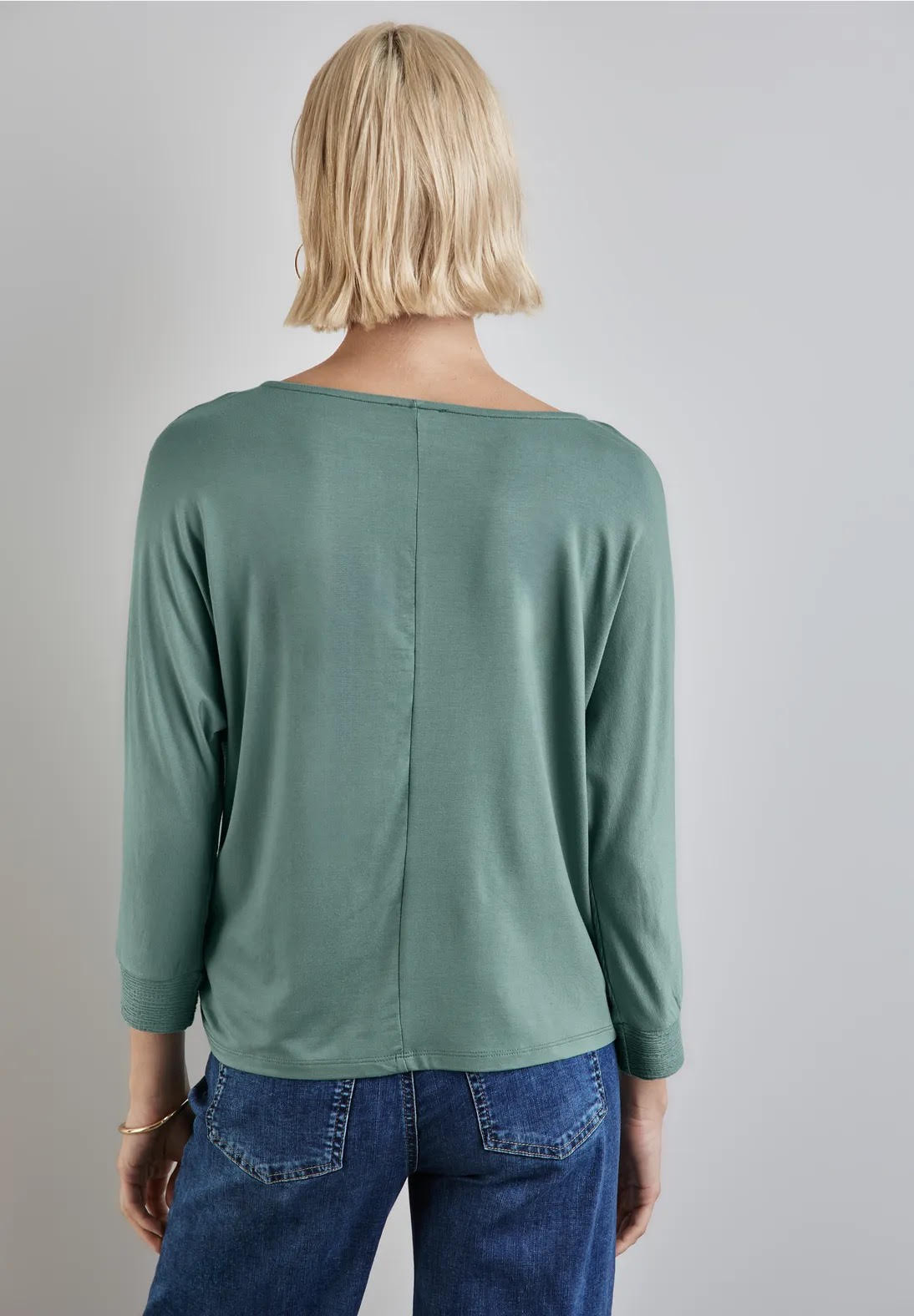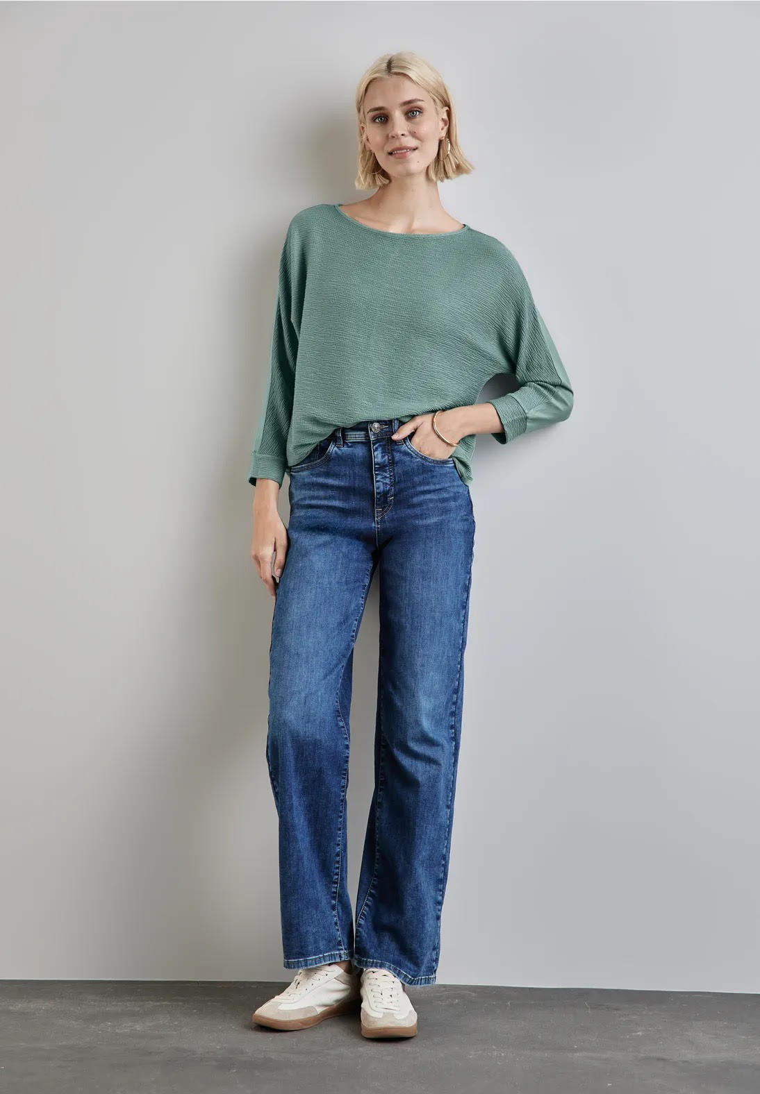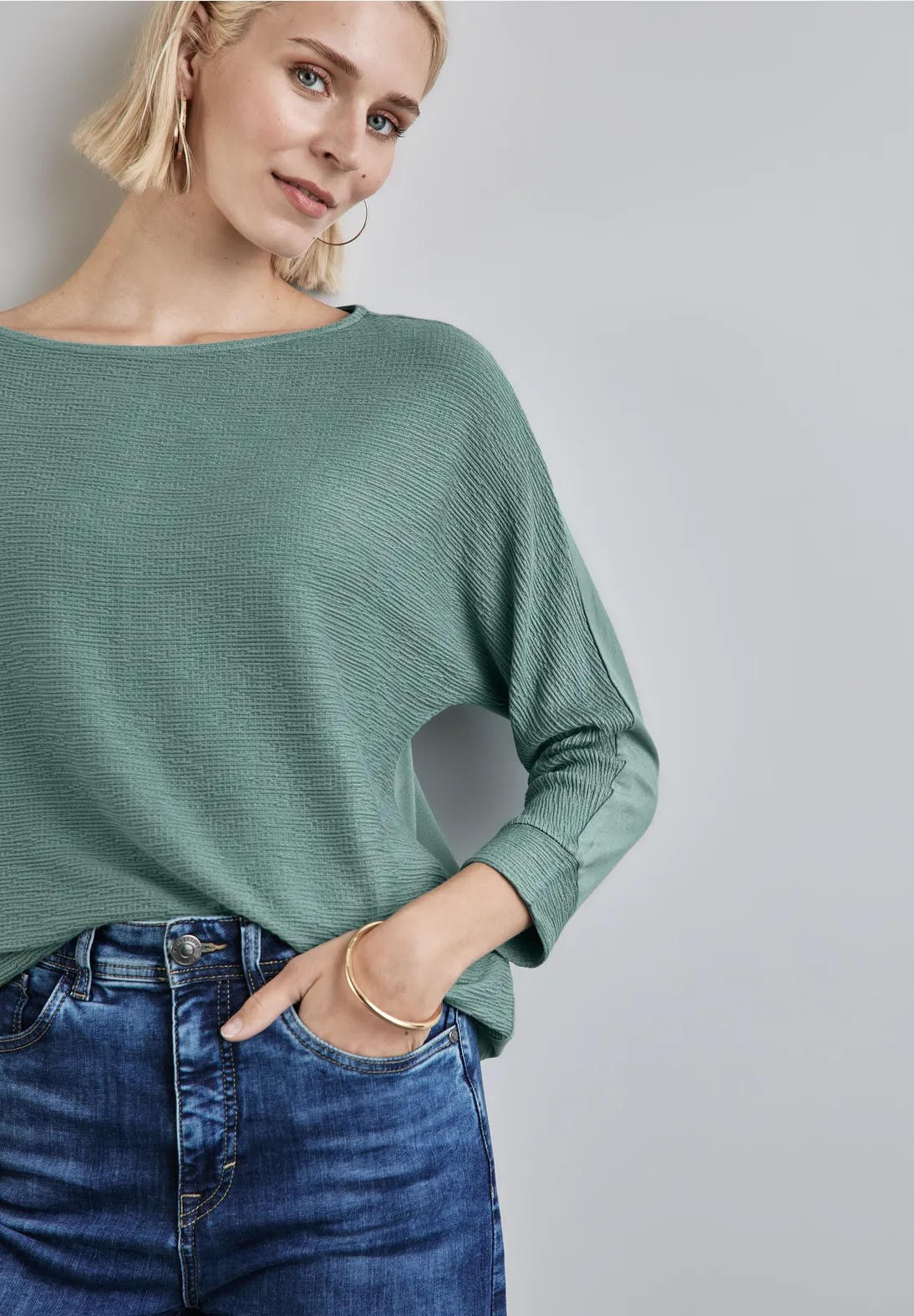 Le t-shirt structuré de Street One pour femmes est un allrounder stylé. L'encolure U-Boot et les manches 3/4 avec poignets confèrent au t-shirt une note élégante. Le mélange de viscose avec une part de stretch offre un confort de port doux et confortable.
