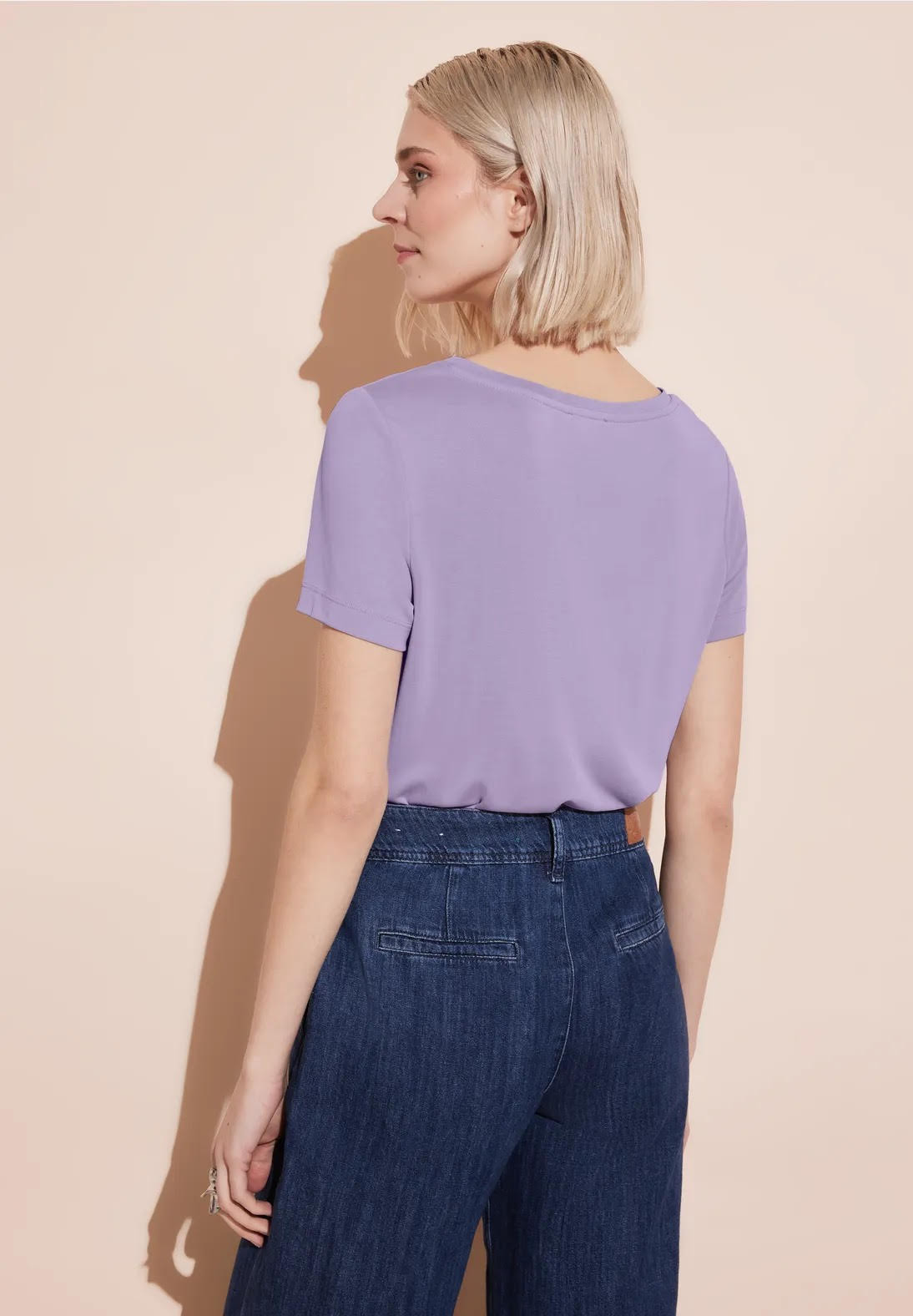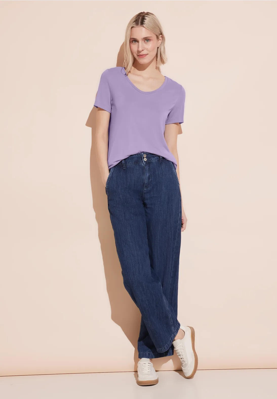 Ce t-shirt en jersey de Street One pour femmes est un modèle à manches courtes à col en V élégant et look soyeux. Confectionné dans un mélange de modal extensible, il est agréable à porter et offre un ajustement optimal. Un basique polyvalent pour tous les jours, facile à combiner et qui constitue un choix élégant en toutes circonstances.